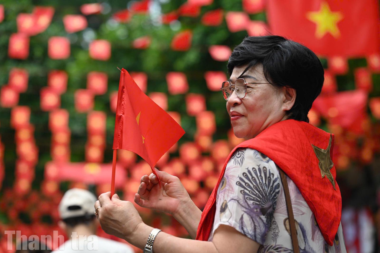Hàng triệu lá cờ bay phấp phới từ những ban công, trên những mái nhà, trên những tuyến phố, tạo nên một cảnh tượng vô cùng ấn tượng. Sắc đỏ ấy không chỉ là màu của lá cờ, mà còn là màu của tình yêu, của lòng tự hào dân tộc, của những năm tháng đấu tranh gian khổ để giành lấy độc lập, tự do.