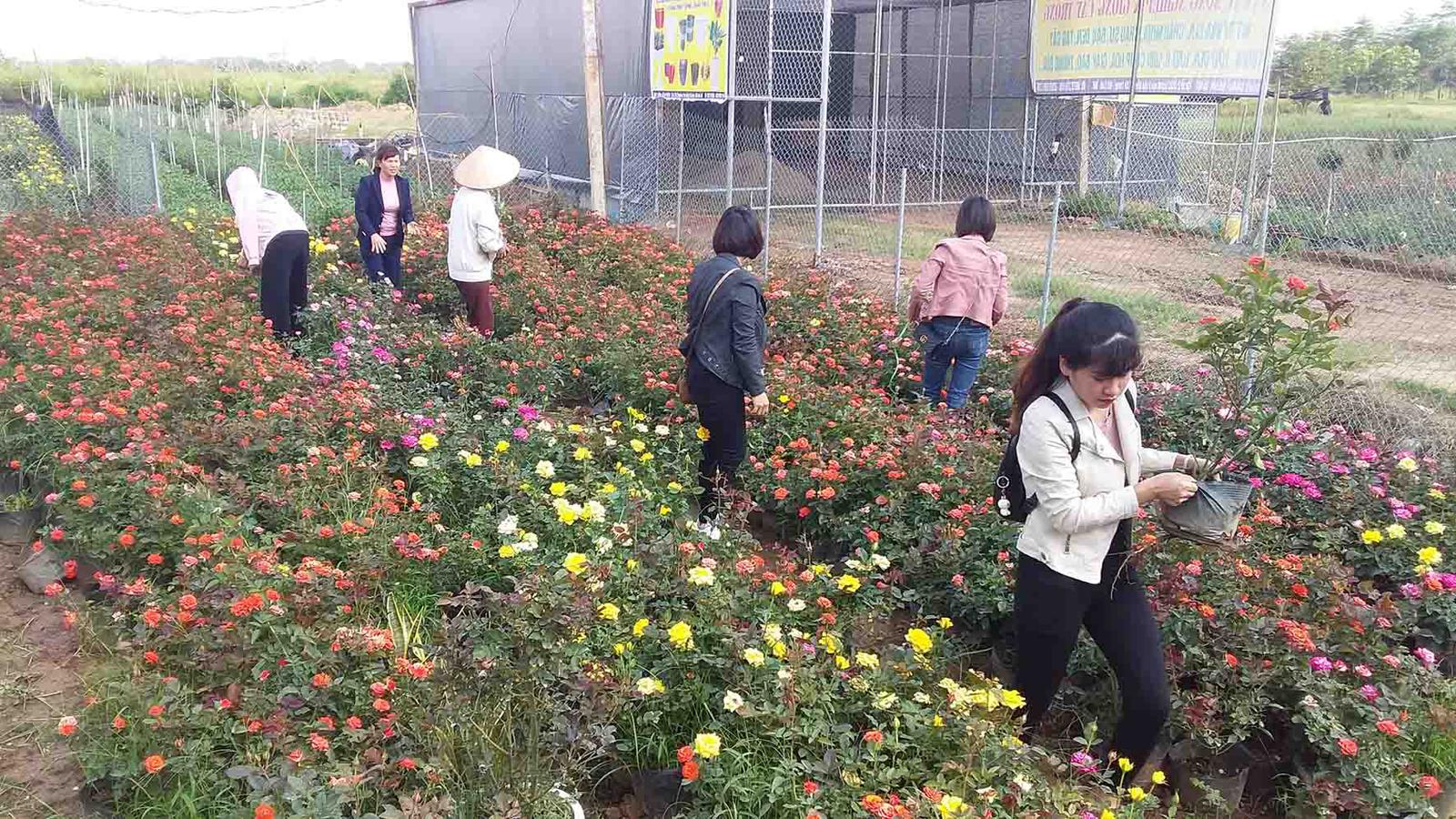 Du khách tham quan và chọn mua hoa hồng ở làng hoa Mê Linh