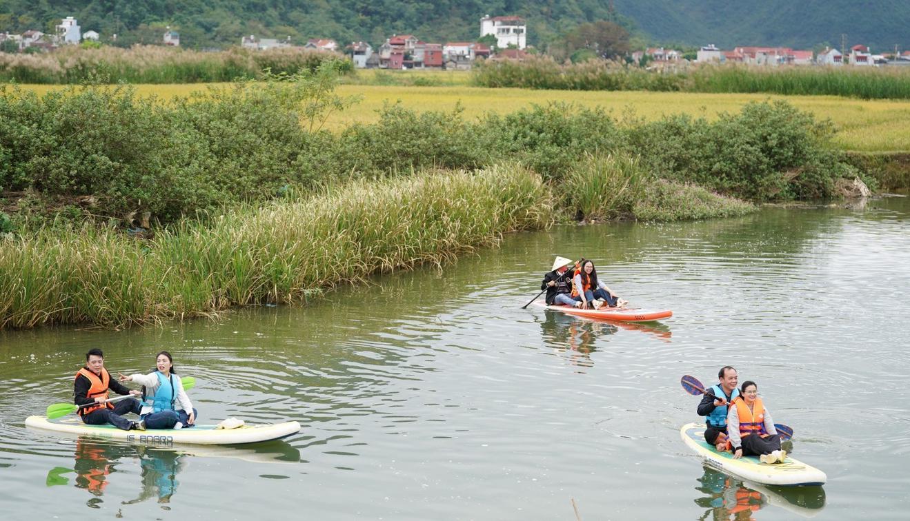 Du khách trải nghiệm hoạt động chèo thuyền SUP tại Lễ hội “Mùa vàng Bắc Sơn” năm 2025. Ảnh: Trí Dũng