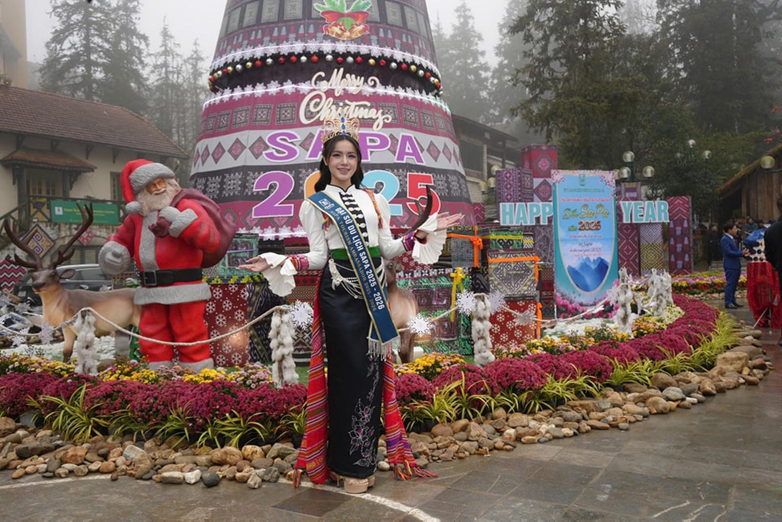 Hoa hậu Ngọc Quỳnh - Đại sứ du lịch Sa Pa có mặt tại buổi lễ chào đón du khách "xông đất" năm 2025. Ảnh: ND