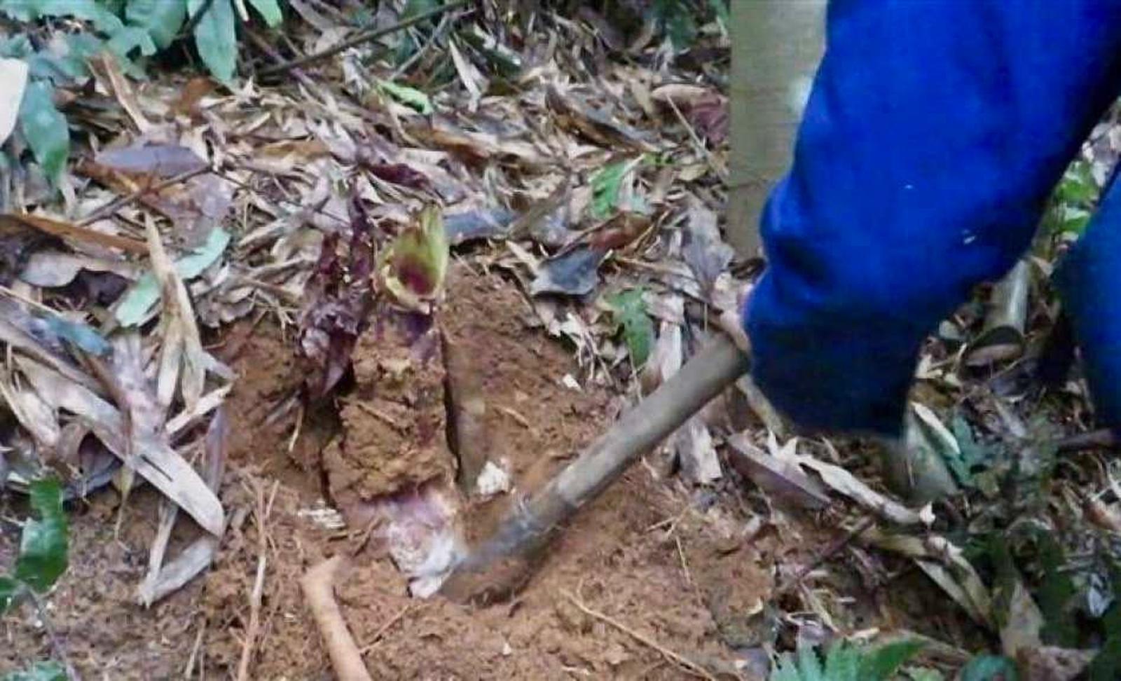 Măng ngon là những búp còn non, chưa vươn khỏi mặt đất, phần đầu nhọn, phủ lớp lông tơ màu nâu đen. Mỗi khi thấy vết nứt đất dưới tán vầu, chỉ cần cào nhẹ là có thể nhặt được những ngọn măng tròn lẳn, có ngọn to bằng bắp chân người lớn.