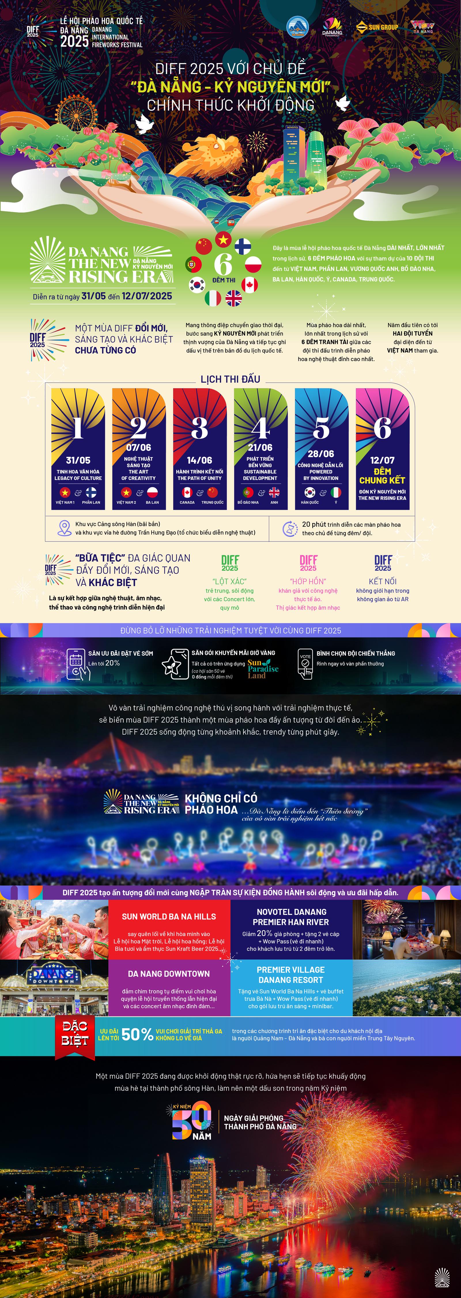 (Thanh tra) - Diễn ra từ 31/5 đến 12/7, đây sẽ là mùa lễ hội pháo hoa kéo dài và quy mô lớn nhất trong lịch sử DIFF, với 6 đêm trình diễn pháo hoa hấp dẫn.
