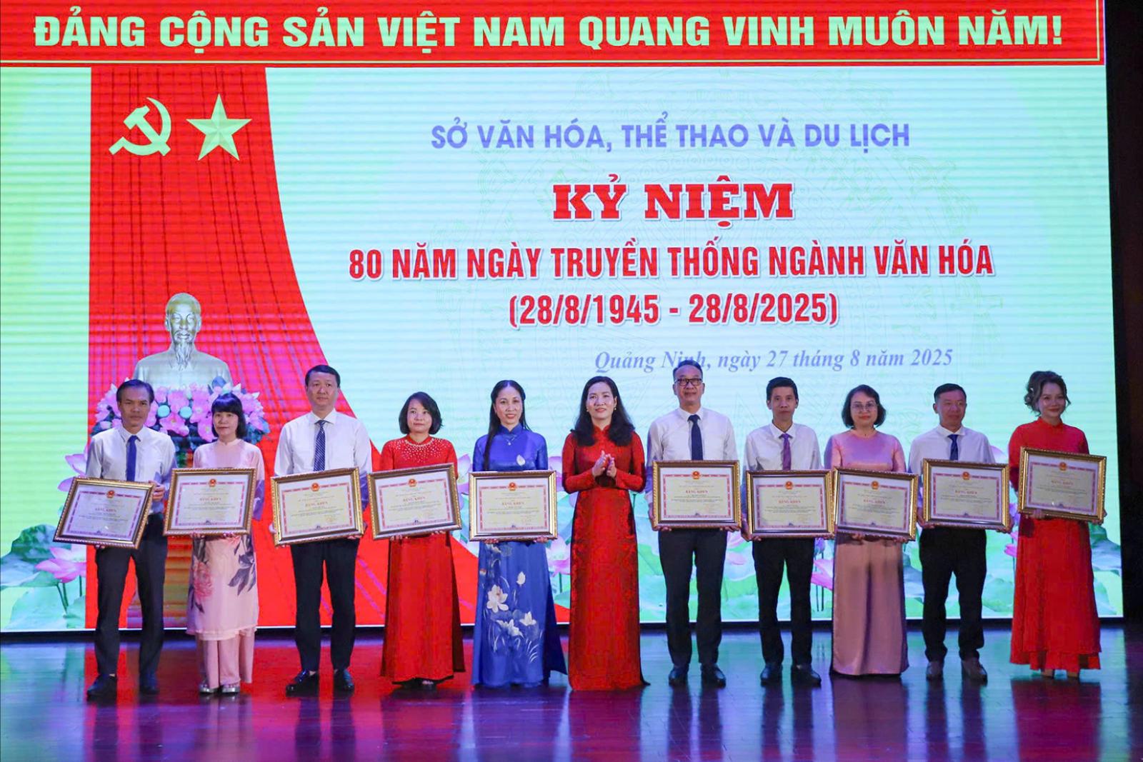 UBND tỉnh Quảng Ninh tặng Bằng khen cho 10 cá nhân có nhiều đóng góp tiêu biểu, nổi bật trong sự nghiệp phát triển văn hoá, thể thao, du lịch của tỉnh. Ảnh: QMG