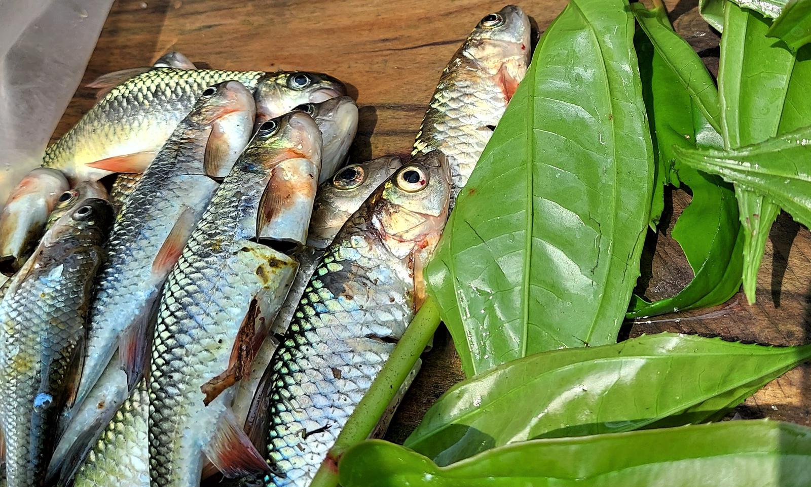 Sau một hồi ngụp lặn, già Sâu trở lại thu lưới. Những con cá mát bằng hai, ba ngón tay người lớn đang giãy dụa ánh lên ánh bạc dưới tia nắng đang xuyên qua tán rừng. Chỉ bắt khoảng chừng hơn 1kg, già Sâu kêu chúng tôi trở về để chế biến các món ngon từ loài cá này. Thấy chúng tôi có vẻ ngạc nhiên vì vẫn còn những đàn cá mát đang từ hang đá trở ra kiếm ăn, già Sâu cười giải thích: “Mình bắt chừng này thôi đãi khách được rồi, mùa này nó gần đẻ, để nó sinh sôi thêm nữa. Bắt hết lần sau không có đãi khách đâu!”.