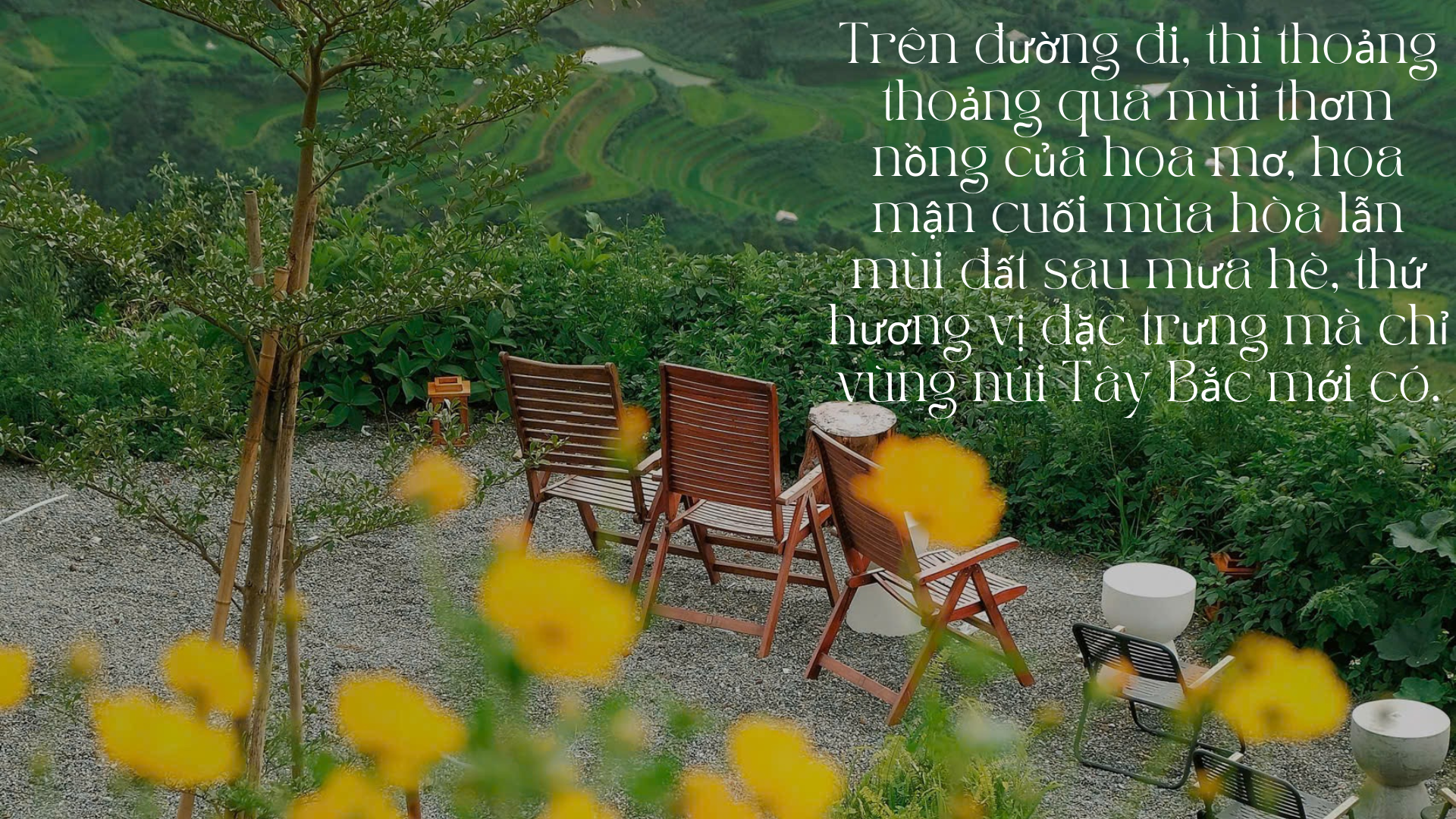 Trên đường đi, thi thoảng thoảng qua mùi thơm nồng của hoa mơ, hoa mận cuối mùa hòa lẫn mùi đất sau mưa hè, thứ hương vị đặc trưng mà chỉ vùng núi Tây Bắc mới có.