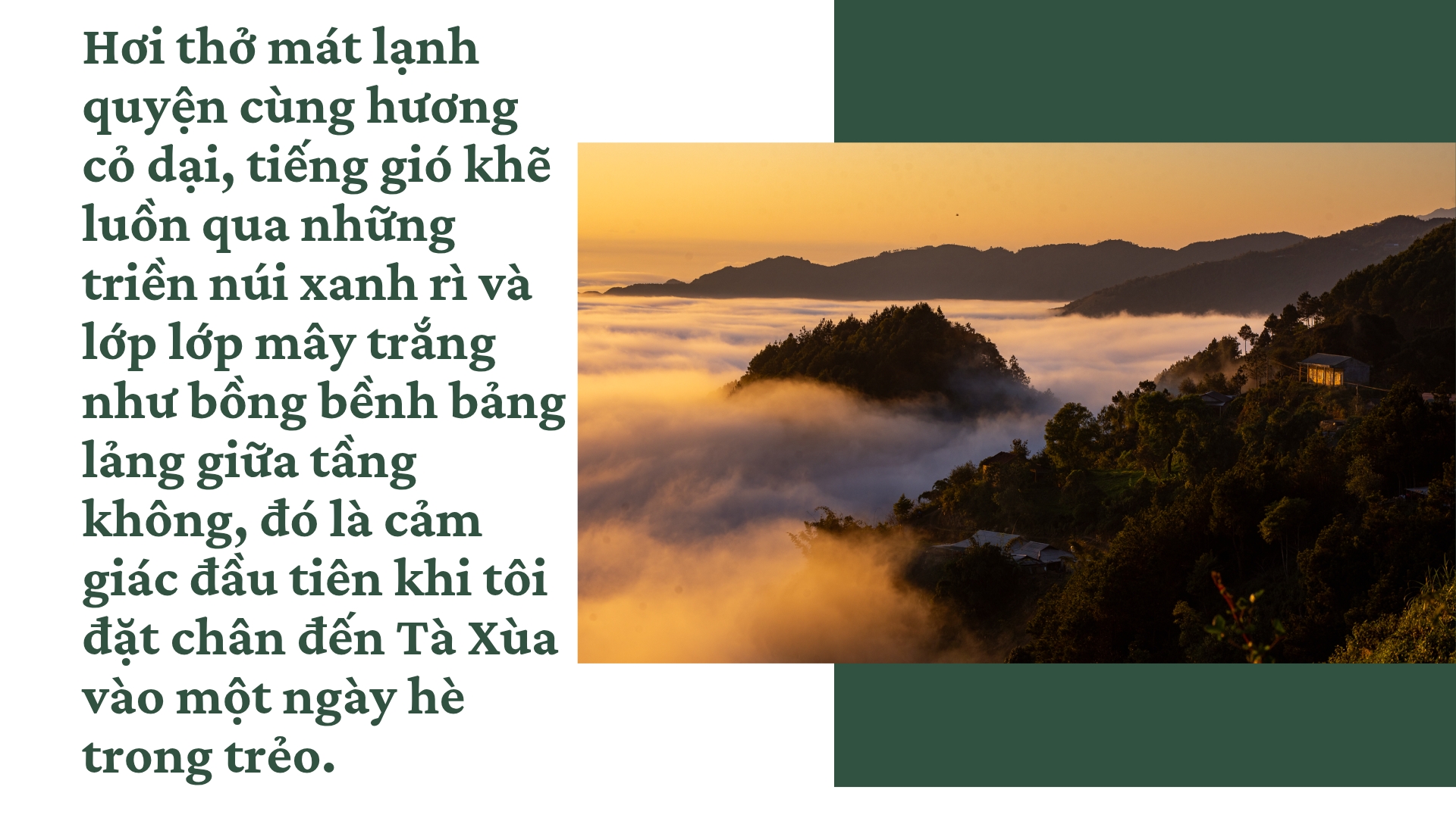 Tà Xùa không chỉ là địa điểm “check-in”, không chỉ là “săn mây”, Tà Xùa là hạnh phúc giản dị của những phút giây sống chậm lại giữa dòng đời hối hả. Ở đây, bạn không chỉ ngắm nhìn thiên nhiên bằng đôi mắt, mà còn sờ, ngửi, lắng nghe, chạm thật gần, sống thật sâu từng phút giây hoang sơ mát lành. Có lẽ đó là lý do mỗi ai từng ghé Tà Xùa đều mang về cho mình một dấu ấn khó phai: Một vùng đất nhỏ bình yên mà khi nhắm mắt lại, vẫn ngỡ mây còn vờn trước mặt, gió còn luồn bên tai và hương cỏ dại còn vương mãi trên đầu ngón tay.