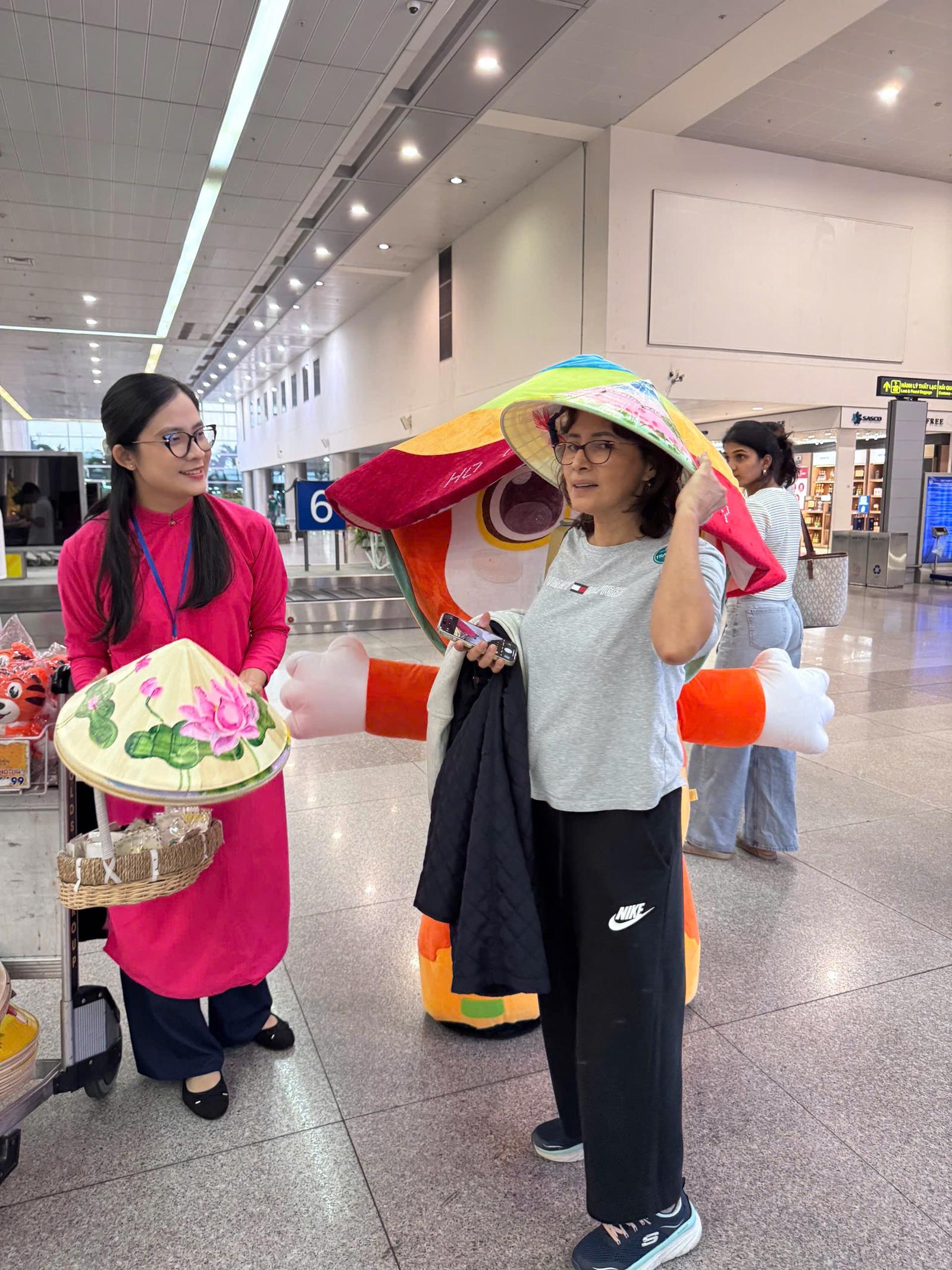 Du khách còn được chụp hình lưu niệm cùng các linh vật, biểu tượng vui của du lịch TP, tạo ấn tượng thân thiện ngay từ cửa ngõ quốc tế.