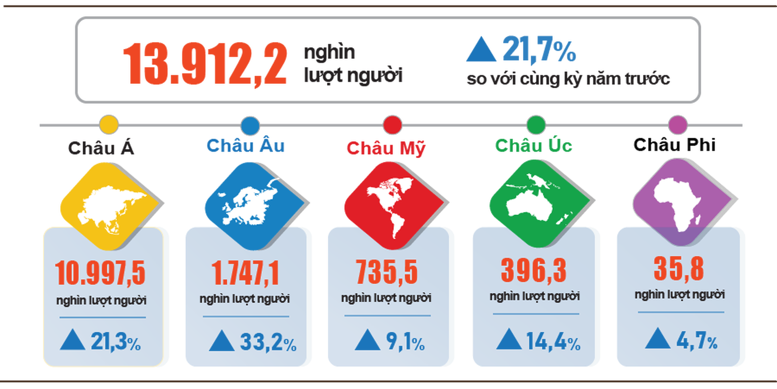Khách quốc tế đến Việt Nam 8 tháng năm 2025