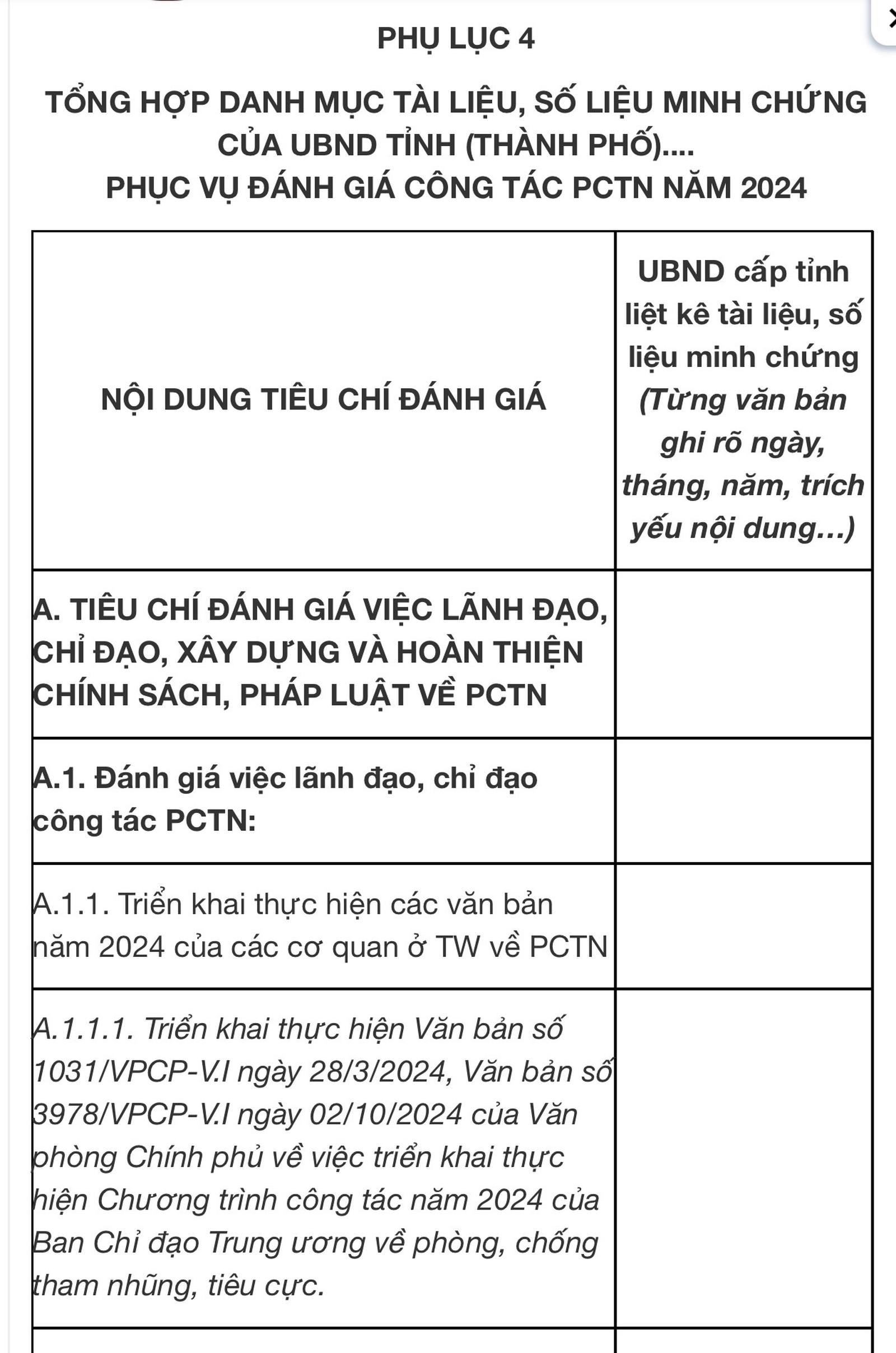 Phụ lục hướng dẫn kèm theo Quyết định số 29/QĐ-TTCP. Ảnh: Bảo Anh