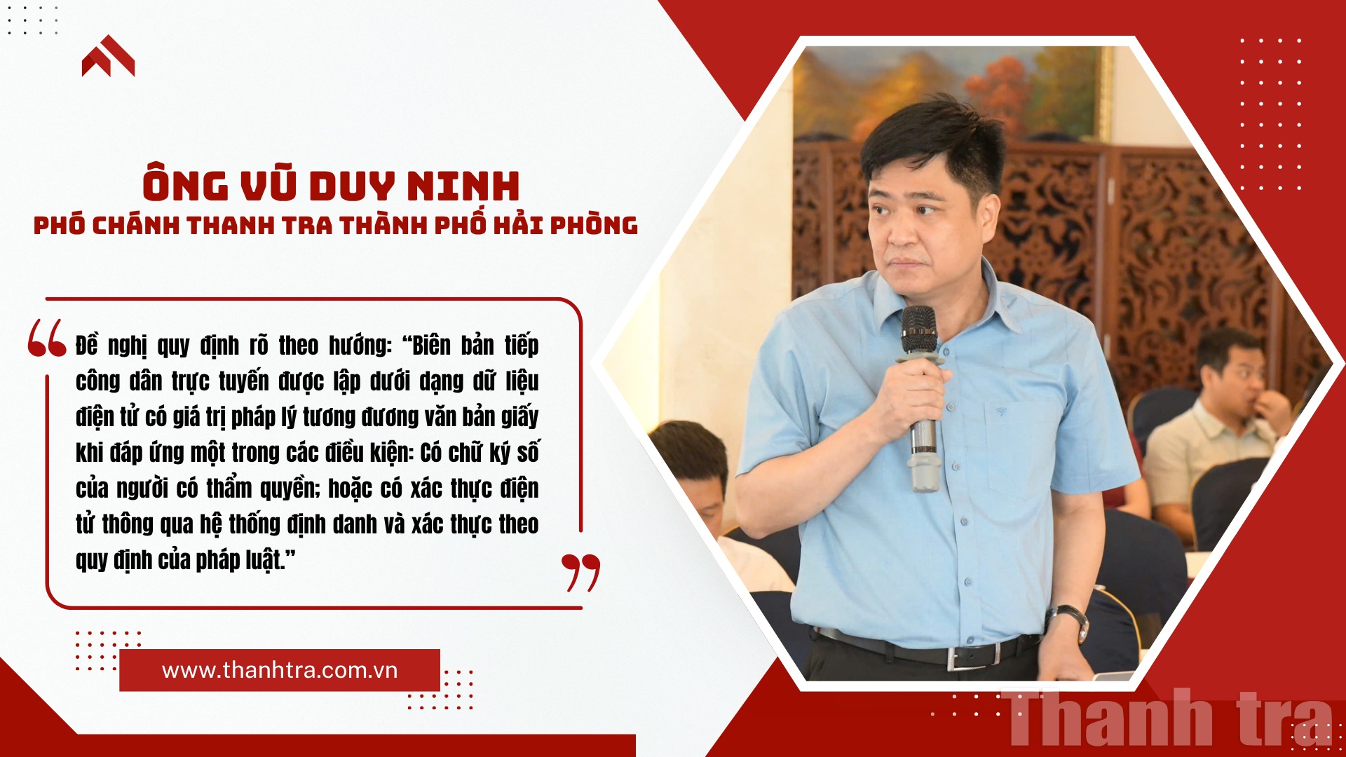 Với việc triển khai tiếp công dân trực tuyến, ông Ninh đề nghị dự thảo cần quy định rõ giá trị pháp lý của biên bản điện tử, yêu cầu phải có chữ ký số của người có thẩm quyền hoặc xác thực qua hệ thống định danh điện tử để có giá trị tương đương với văn bản giấy.
