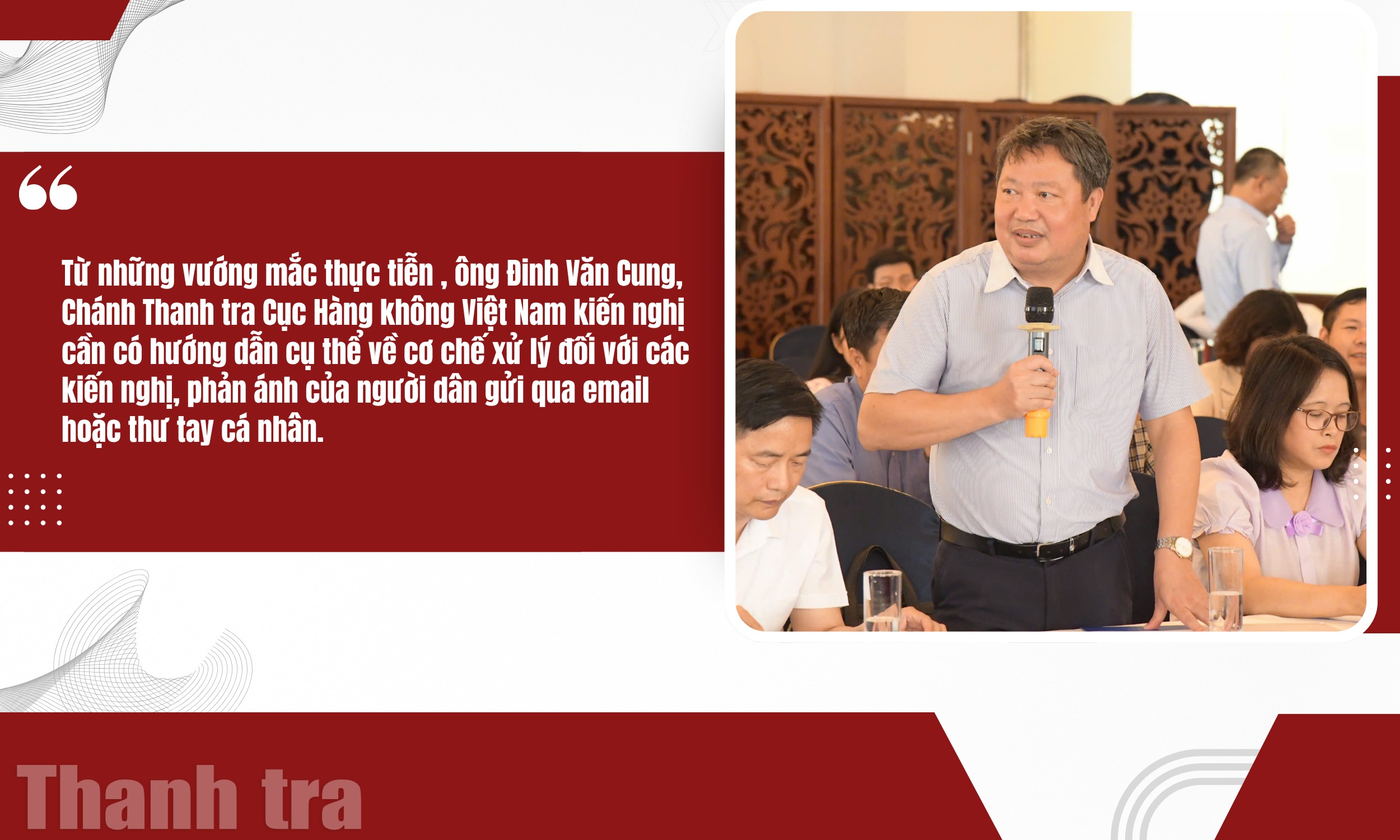 Do đó, Chánh Thanh tra Cục Hàng không Việt Nam kiến nghị cần có cơ chế, hướng dẫn cụ thể để xử lý chuẩn xác, đúng luật đối với các hình thức tiếp nhận thông tin này.