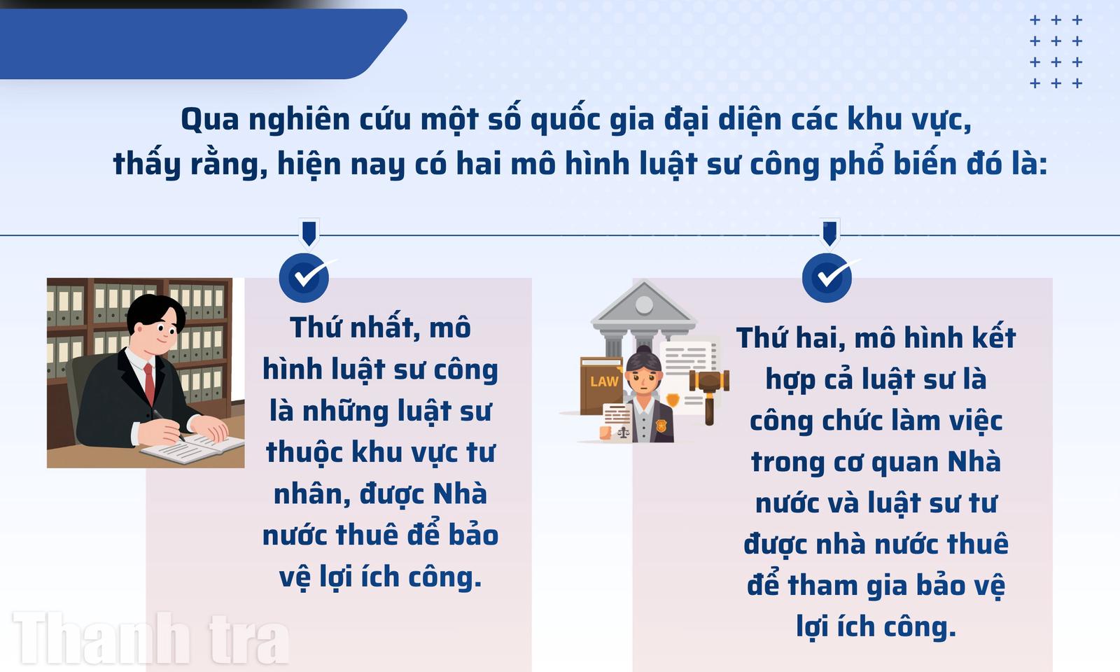 Thứ hai, mô hình kết hợp cả luật sư là công chức làm việc trong cơ quan Nhà nước và luật sư tư được Nhà nước thuê để tham gia bảo vệ lợi ích công.