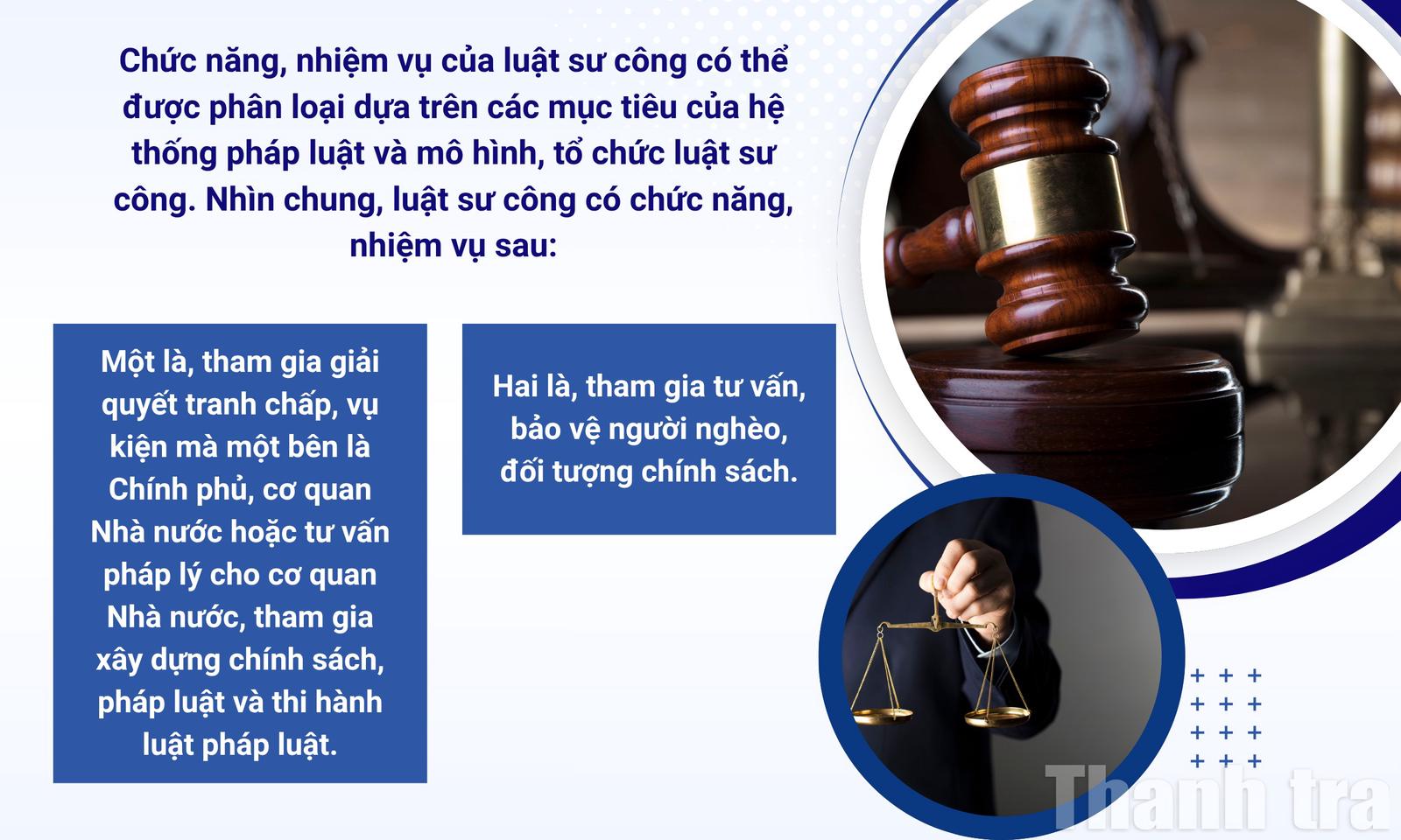 (Thanh tra) - Luật sư công là một thiết chế pháp lý phổ biến ở nhiều quốc gia, được tổ chức và vận hành khác nhau tùy theo hệ thống pháp luật. Đây là đội ngũ luật sư chuyên nghiệp làm việc trong khu vực Nhà nước, nhằm cung cấp dịch vụ pháp lý vì lợi ích công, đặc biệt cho người yếu thế hoặc trong các vụ việc liên quan đến lợi ích Nhà nước.