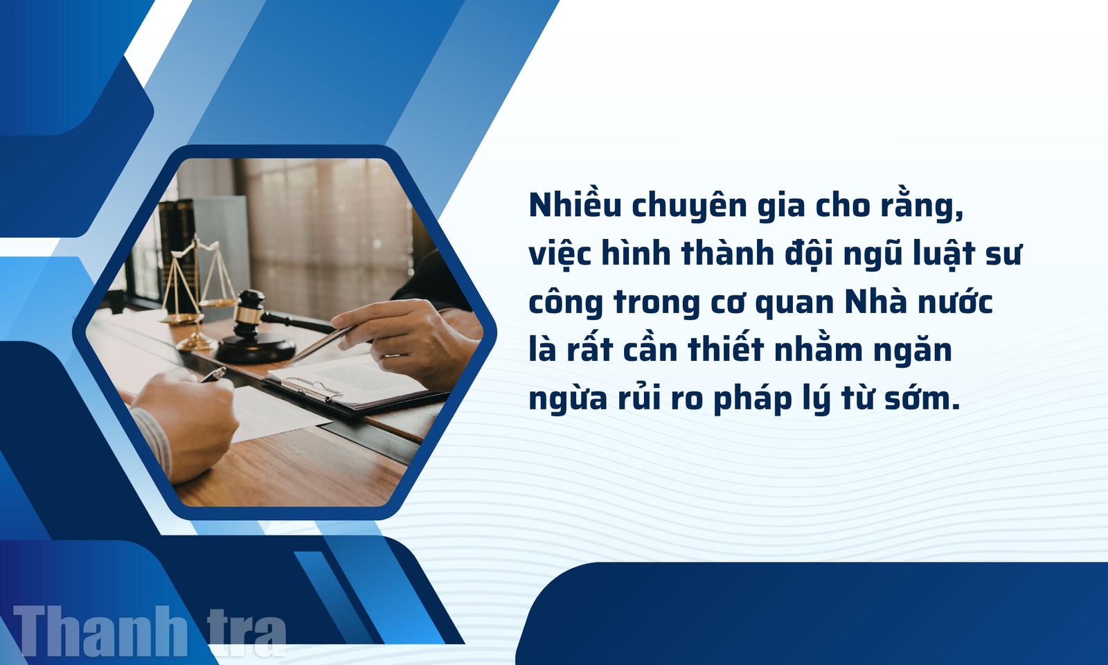 Trong bối cảnh cải cách tư pháp và hội nhập quốc tế, nhiều chuyên gia cho rằng, việc hình thành đội ngũ luật sư công trong cơ quan Nhà nước là rất cần thiết nhằm ngăn ngừa rủi ro pháp lý từ sớm, nhất là đối với các vụ việc, vụ kiện liên quan đến phát triển kinh tế - xã hội.