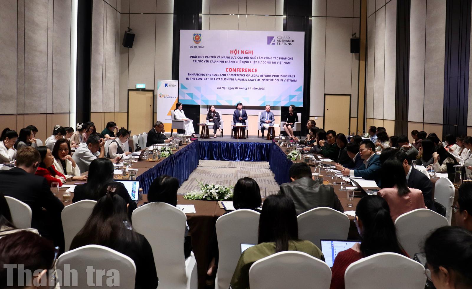 Toàn cảnh hội thảo “Phát huy vai trò và năng lực của đội ngũ làm công tác pháp chế trước yêu cầu hình thành chế định luật sư công tại Việt Nam”, được Bộ Tư pháp tổ chức ngày 7/11/2025. Ảnh: Minh Nguyệt
