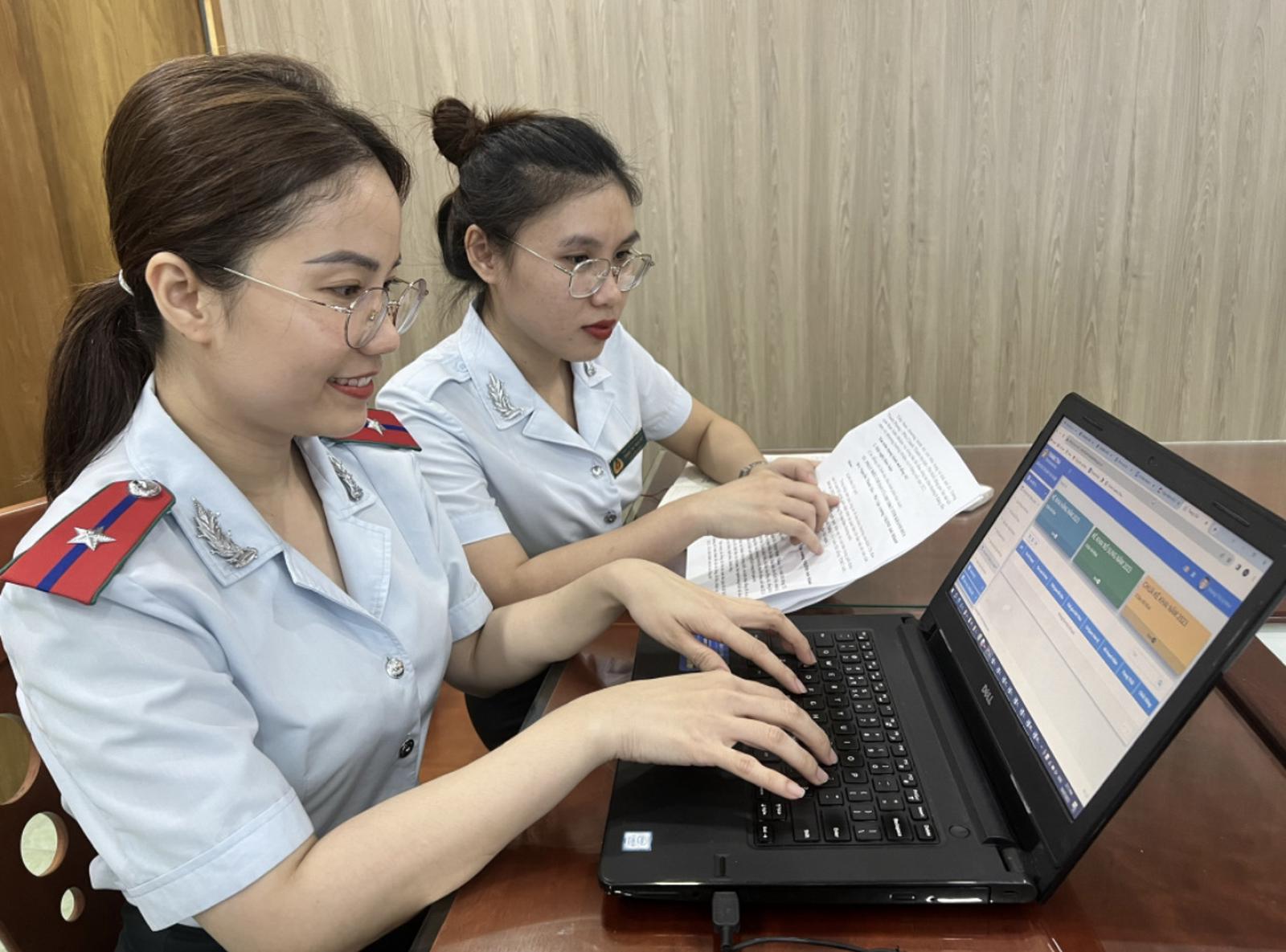 Cán bộ Thanh tra tỉnh thao tác trên phần mềm hỗ trợ xác minh tài sản, thu nhập. Ảnh: TTT