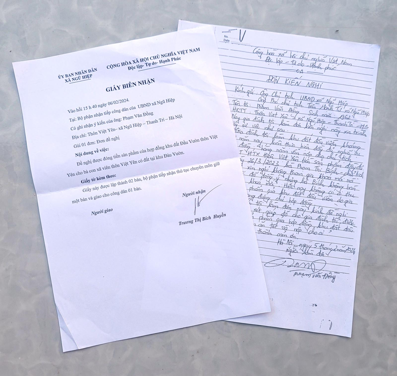 Sau khi Đại hội HTX Việt Yên kết thúc, bà Bính đã xin rút không tham gia điều hành khóa mới và bị kết luận bỏ ngoài sổ sách tiền cho thuê 3 mẫu ruộng, ông Đồng không biết nộp tiền thuê đất theo hợp đồng với HTX cho ai, phải viết đơn gửi UBND xã để được đóng tiền thuê đất. Đến nay, ông Đồng vẫn mang tiếng là nợ tiền thuê đất của bà con xã viên. Ảnh: Hoàng Nam