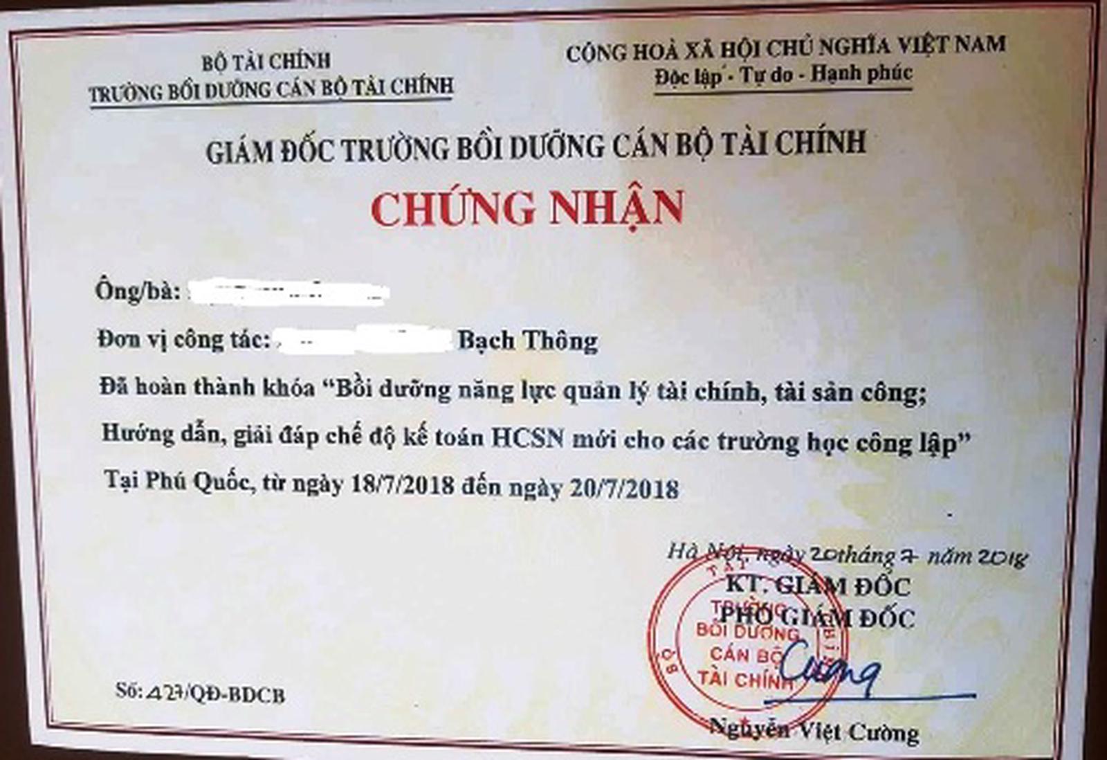 Theo ông Đặng Hữu Dương, Trưởng phòng GD&ĐT huyện Bạch Thông, khoảng giữa tháng 4/2018, Phòng có nhận được Công văn từ Trường Bồi dưỡng cán bộ tài chính (Bộ Tài chính) về việc tổ chức khóa học “Bồi dưỡng năng lực tài chính tài sản công, hướng dẫn, giải đáp chế độ kế toán hành chính sự nghiệp mới cho các trường công lập”.