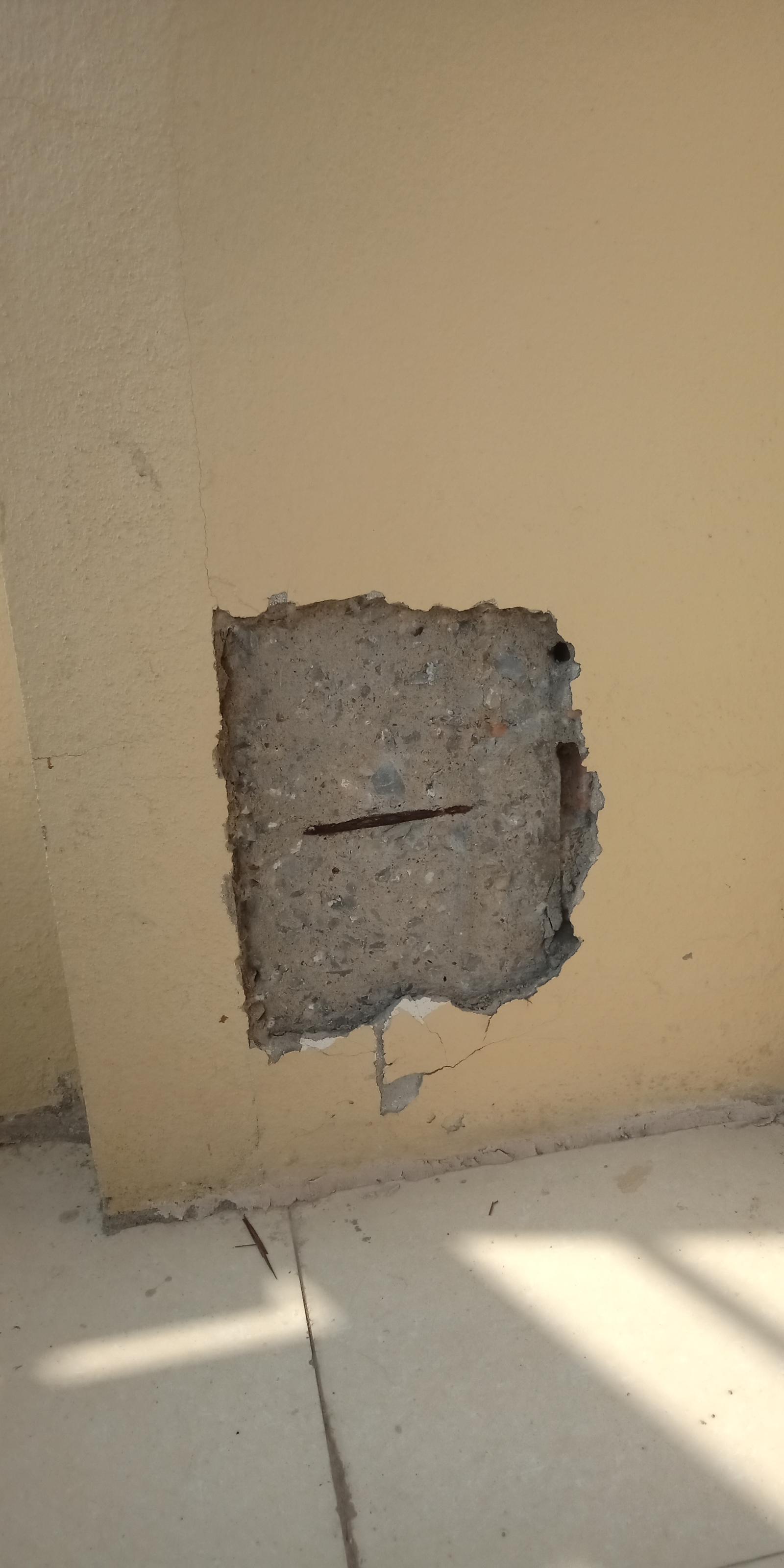 Kết cấu cột cũ của tòa nhà được đơn vị kiểm định đục ra để đánh giá an toàn chịu lực và vận hành công trình sau khi bỏ quan hạng mục kết cấu dầm, cột bê tông cốt thép cấy vào hệ thống kết cấu cũ. Ảnh: VT