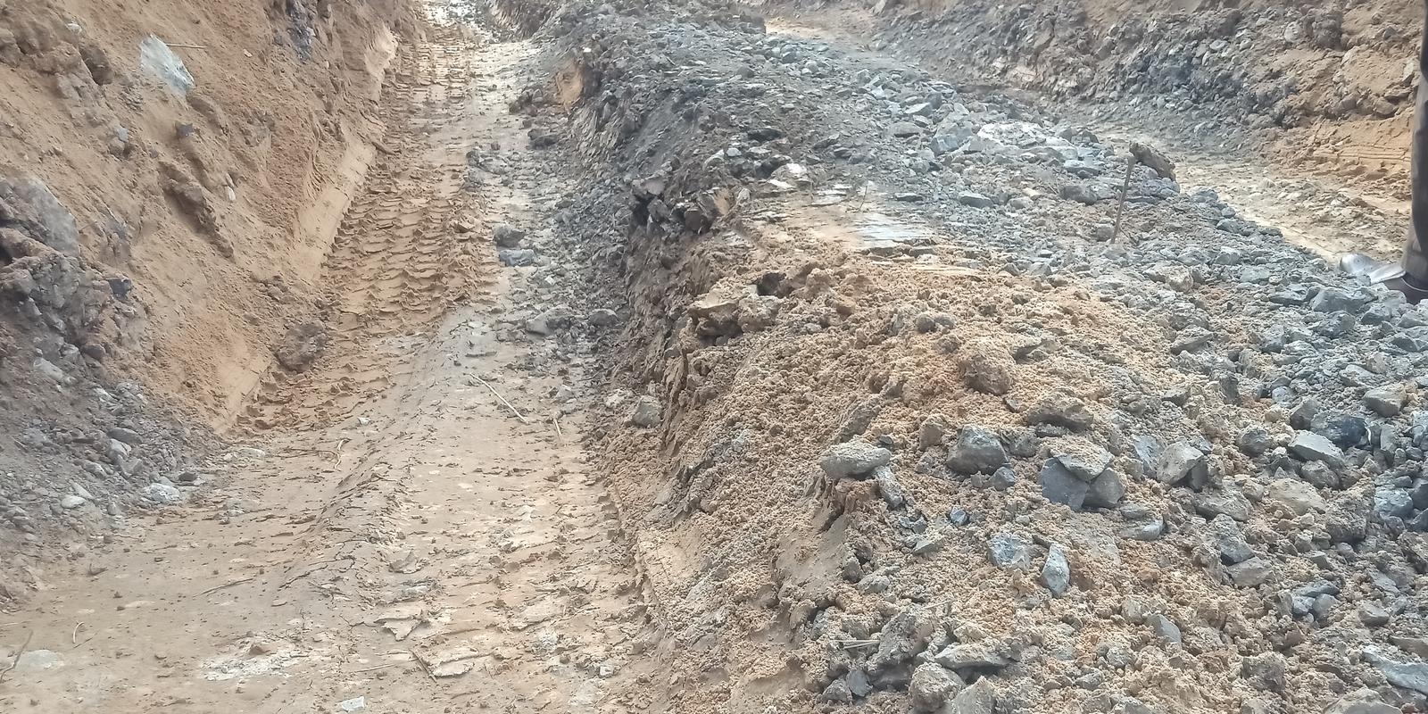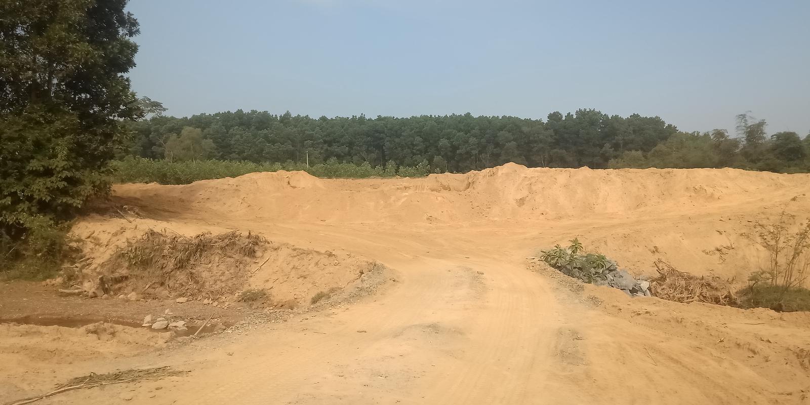 Con đường vào khu vực đồi núi đang bị khai thác cát trái phép được thổ phỉ dùng máy múc mở đường rộng rãi để xe ô tô Howo có trọng tải lớn ra vào vận chuyển dễ dàng. Mặt đường mở trái phép này do xe quá tải qua lại nhiều lần nên vẫn còn hằn in những vết lốp xe. Những lốt sống trâu, sống voi để lại giữa cung đường đã tạo thành những “cái bẫy” như thách thức người qua lại đây.