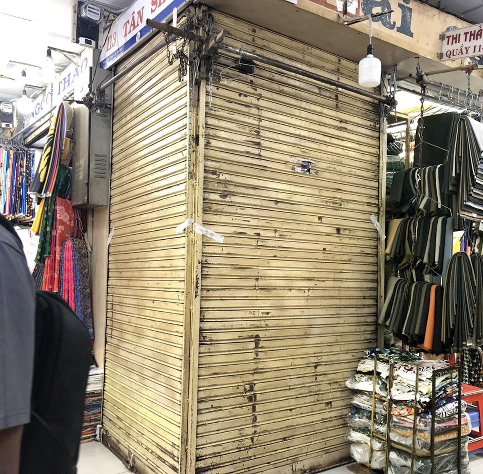 Quầy sạp của bà Sử Thị Ái Oanh bị ban quản lý niêm phong. Ảnh: Ngân Nga