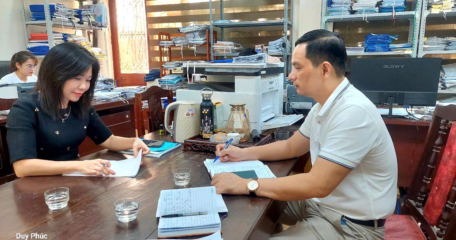 Bà Nguyễn Thị Xuân, Trưởng phòng Tài nguyên và Môi trường huyện Triệu Sơn (trái ảnh) trao đổi với phóng viên Báo Thanh tra. Ảnh: Văn Thanh