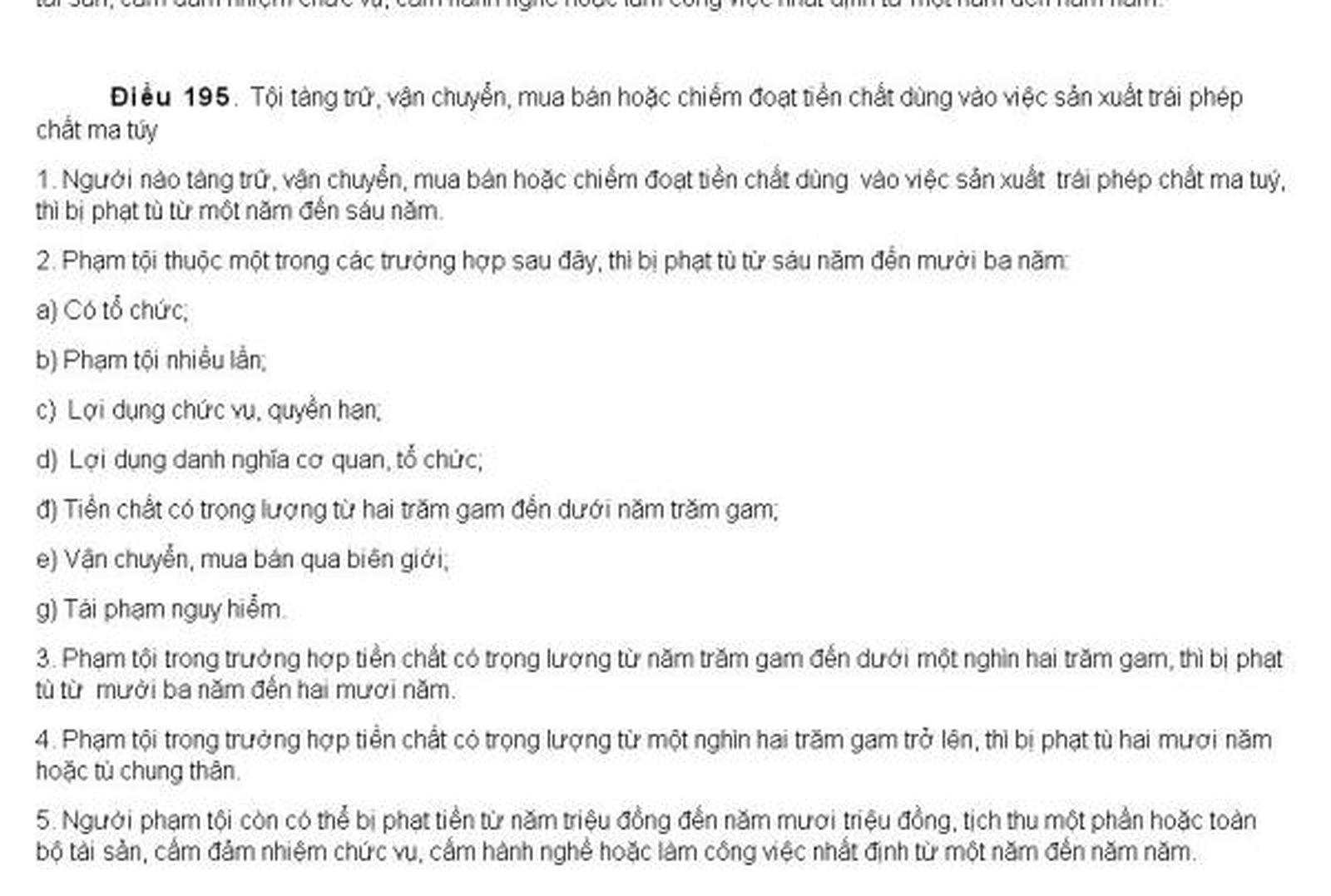 Một điểm bất thường khác nằm ngay tại cáo trạng của VKSND tỉnh Bắc Ninh mà chúng tôi nhận thấy, đó là tại phần kết luận, trang 11, cáo trạng viện dẫn Khoản 2, Điều 195 Bộ luật Hình sự năm 1999 để kết tội cho 3 bị can. Tuy nhiên, theo tìm hiểu của chúng tôi, Khoản 2, Điều 195 qui định về Tội tàng trữ, vận chuyển, mua bán hoặc chiếm đoạt tiền chất dùng vào việc sản xuất trái phép chất ma túy; hoàn toàn không liên quan đến vụ án này.