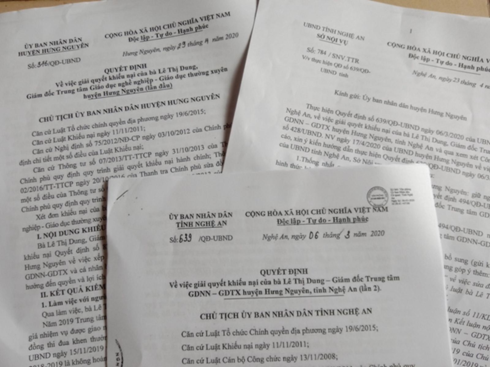 Theo ông Hoàng Nghĩa An, Trưởng phòng Nội vụ Hưng Nguyên: Ngoài các KN của bà Dung đối với việc xử lý, giải quyết của UBND huyện, trong năm học 2018 - 2019, tại Trung tâm GGNN-GDTX huyện Hưng Nguyên còn có một số đơn thư và các ý kiến phản ánh khác.