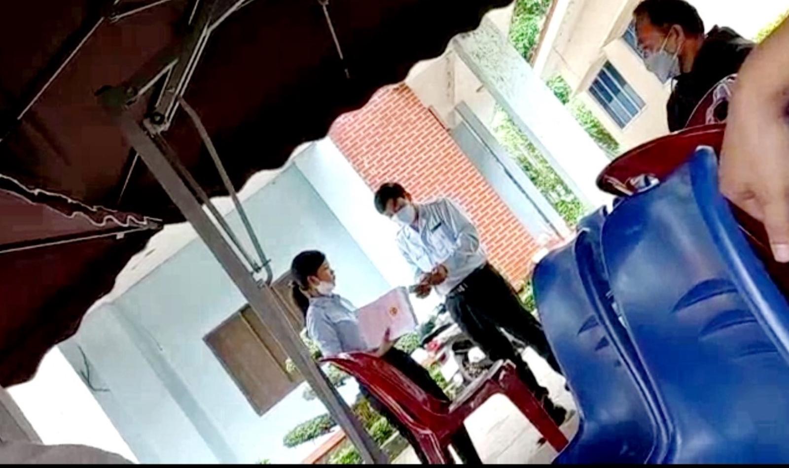 Cán bộ Chi nhánh Văn phòng ĐKĐĐ huyện Lộc Ninh trao đổi một vật giống sổ đỏ và tiền không qua biên nhận và không qua bộ phận một cửa. Ảnh cắt từ video clip