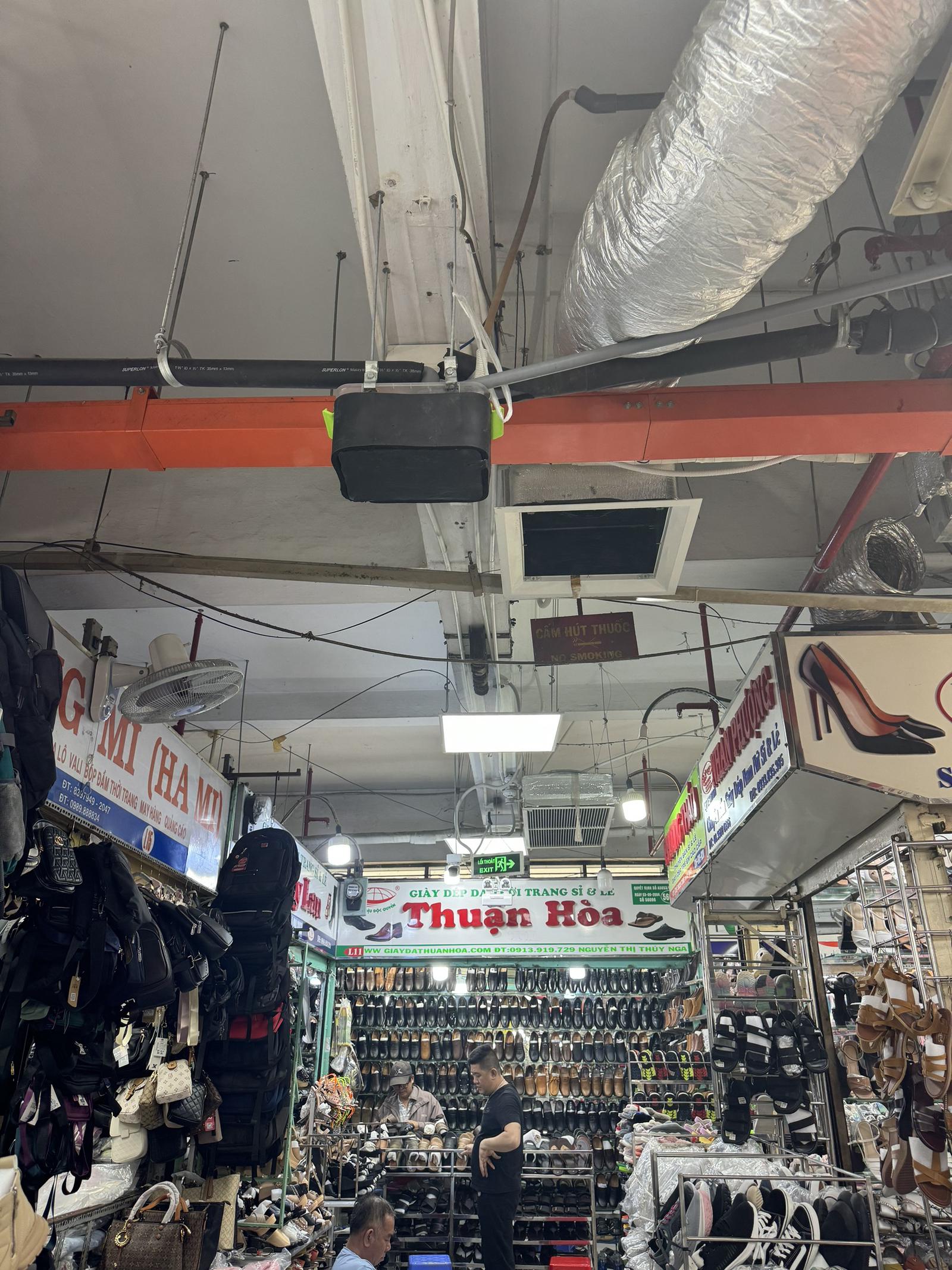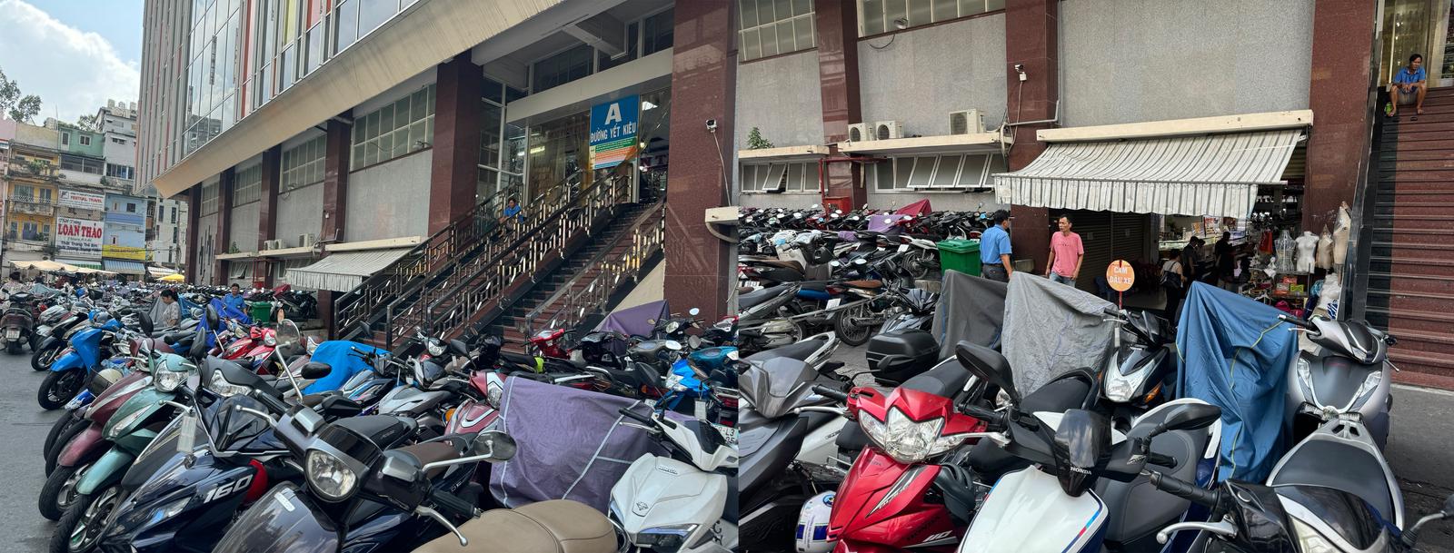 Thậm chí, các hành lang an toàn phòng cháy chữa cháy (PCCC) của các tầng, các chân cầu thang, các ô giếng trời cũng được Ban Quản lý “tận dụng” để phân lô bán sạp với khoảng 800 quầy sạp. Điều này khiến các bãi xe bị đẩy ra các con đường thoát hiểm xung quanh, các cửa ra vào của 4 mặt chợ luôn bị quây kín bởi các bãi giữ xe.