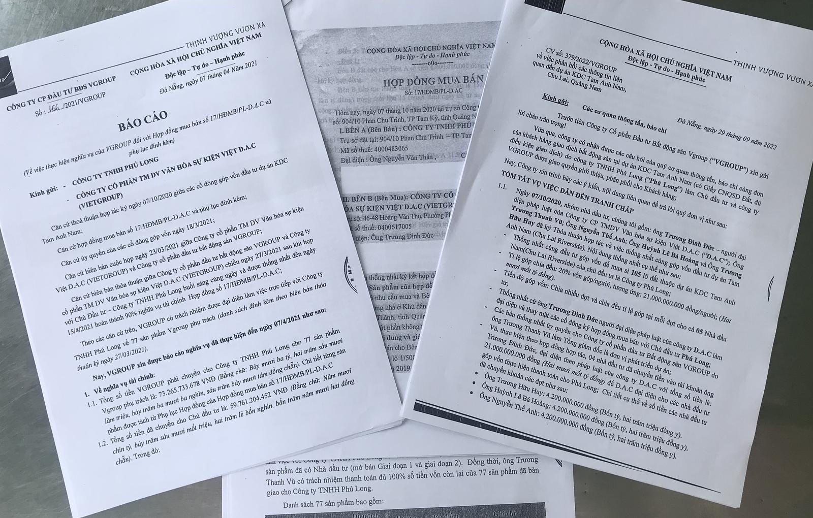 Song, Cty D.A.C đề nghị Cty Phú Long giao trả 15 sổ đỏ đang giữ và kèm theo điều kiện là Cty Phú Long phải hoàn tất hồ sơ chuyển nhượng cho 28 khách hàng theo danh sách của Cty D.A.C cung cấp. Từ nội dung này cho thấy, 77 sản phẩm mà VGROUP đã phân phối cho Cty D.A.C bị bỏ rơi, dẫn đến các ý kiến, yêu cầu giữa các bên mâu thuẫn, không thống nhất…