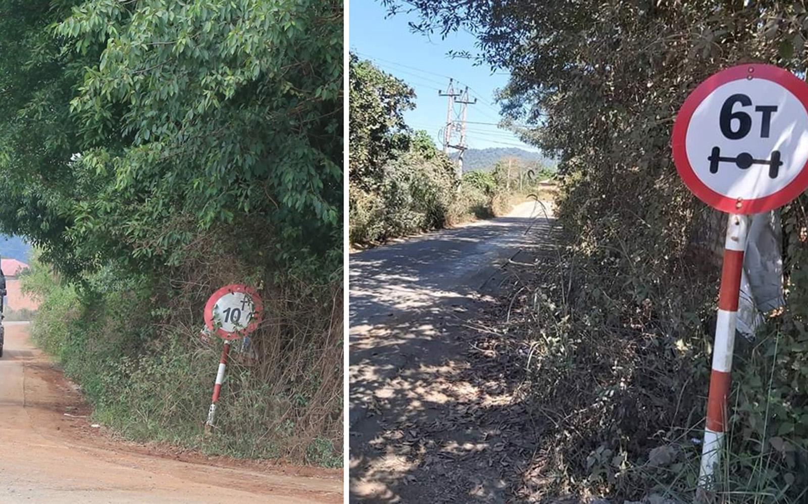 Biển hạn chế tải trọng 10 tấn trên đường ĐH 63 được thay bằng biển tải trọng 6 tấn/trục. Ảnh: NT