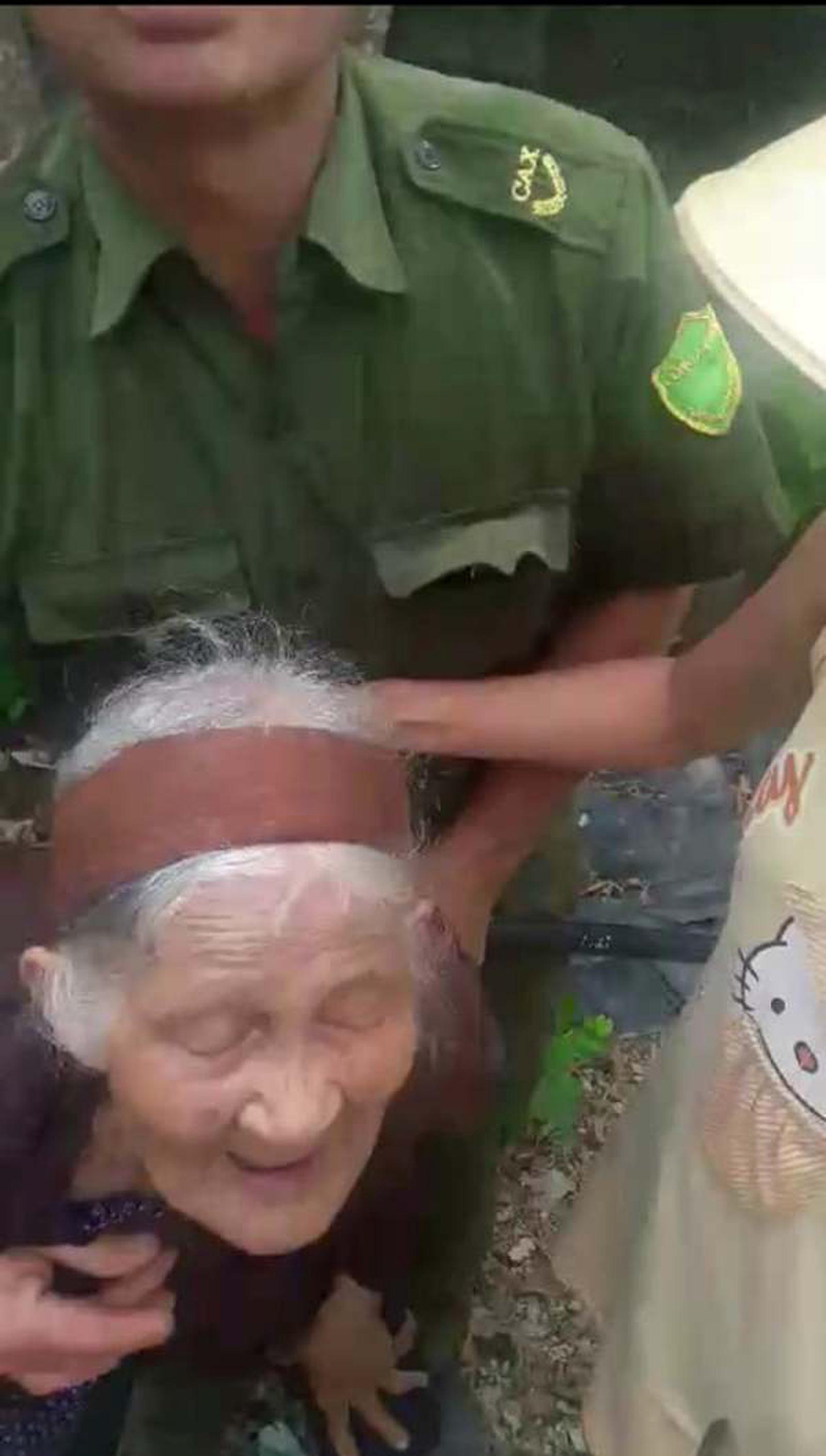 Cụ Trần Thị Nhẫn (89 tuổi) bị Công an xã Đồng Tâm khống chế. Ảnh: Trần Quý