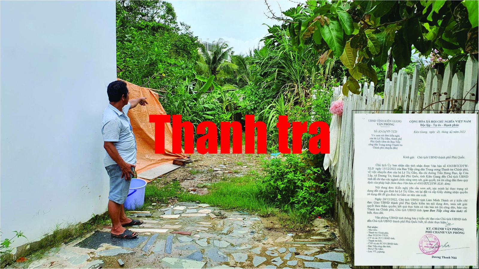 (Thanh tra) - Gần 6 tháng từ khi UBND tỉnh Kiên Giang ban hành văn bản giao UBND TP Phú Quốc kiểm tra, xem xét, giải quyết trường hợp khiếu nại của gia đình bà Gấm, đến nay, chính quyền địa phương vẫn đứng ngoài cuộc.