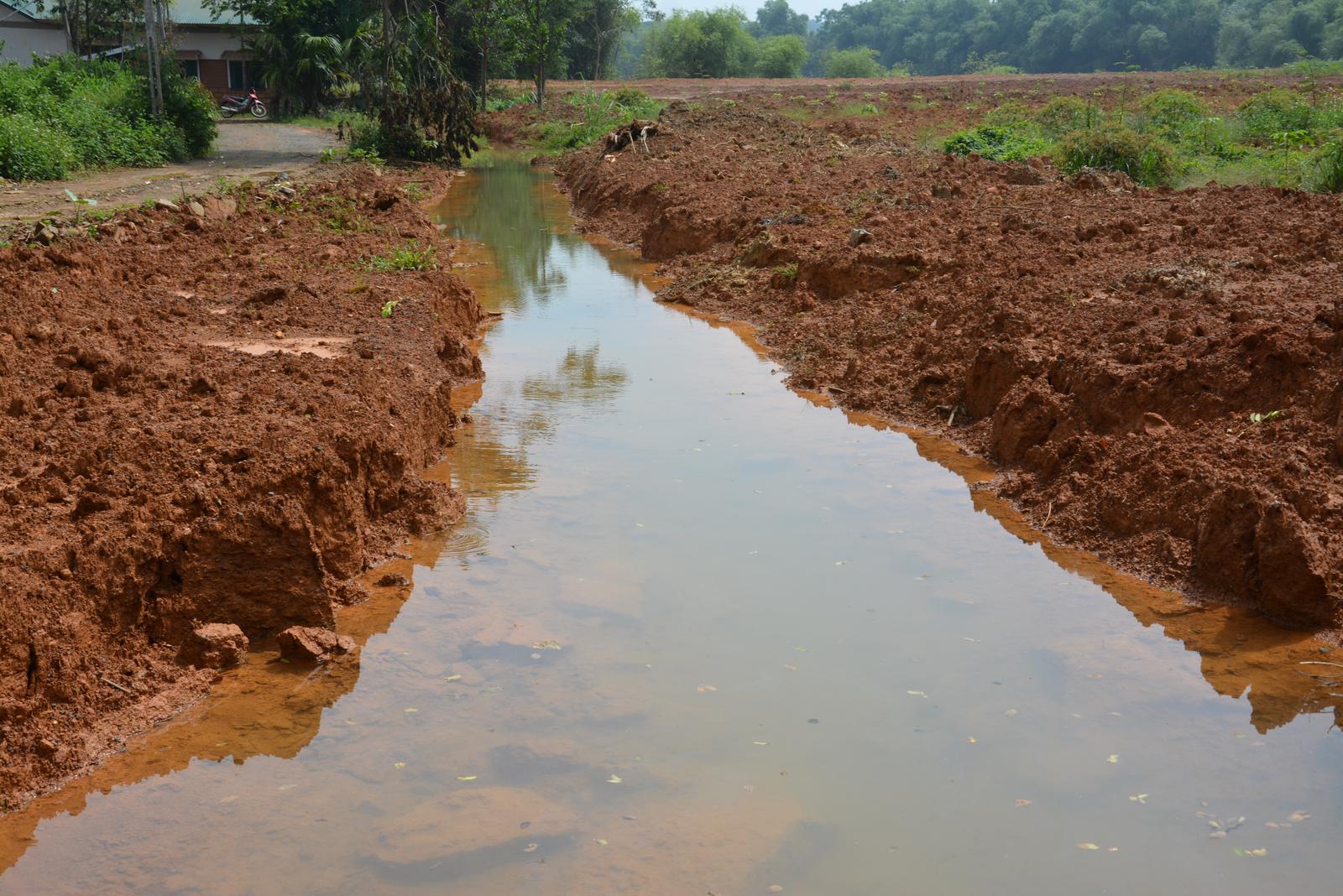 Đường mương nổi trên khu ao ông Đình đã được CTCP Việt - Mông khơi lại nhưng không tiêu được nước. Ảnh: HB