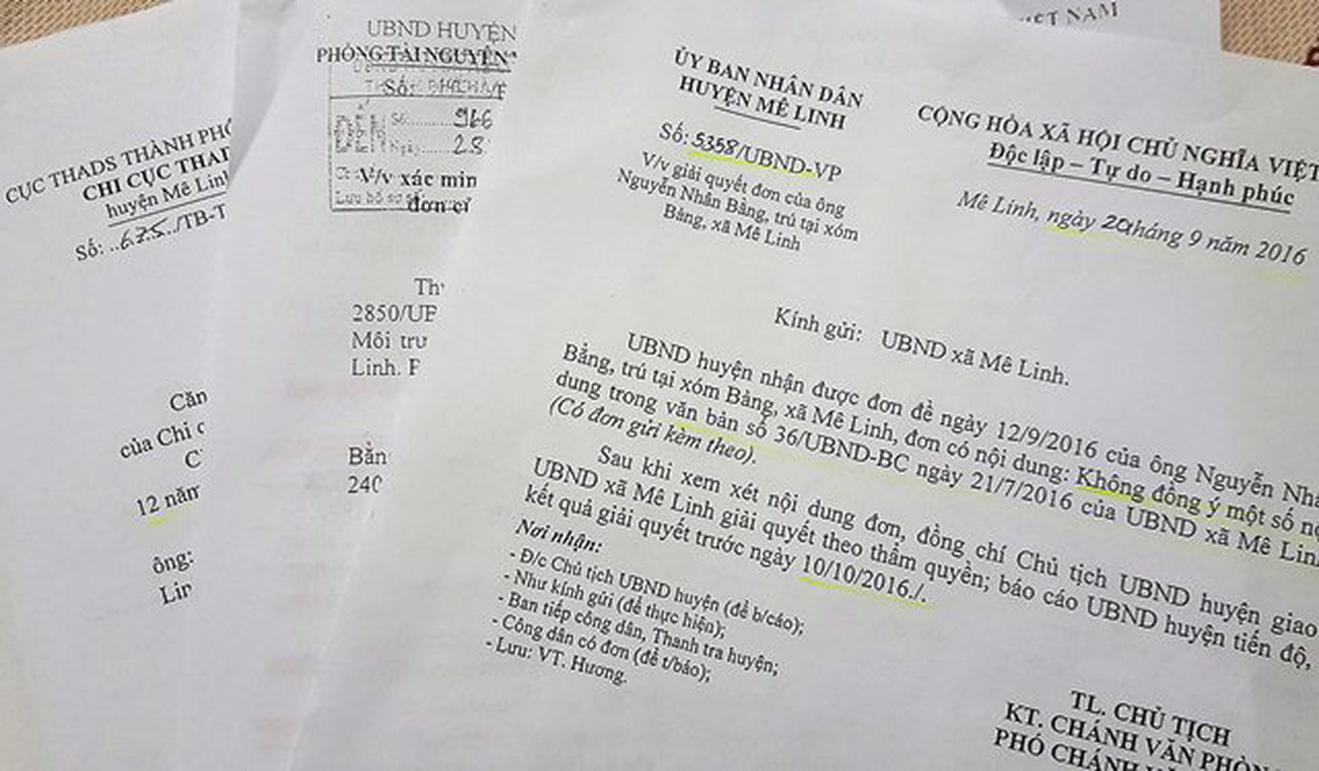 Tiếp đó, UBND huyện đã giao UBND xã Mê Linh trả lời đơn thư của gia đình ông Bằng theo quy định. UBND xã Mê Linh đã ban hành Văn bản số 79/UBND khẳng định, diện tích theo tiêu chuẩn của hộ ông Bằng vẫn còn thiếu 117m2. Tuy nhiên, thửa đất số 1 tờ bản đồ 16 đã được Tòa án nhân dân thành phố Hà Nội xét xử phúc thẩm tại Bản án số 84 do vậy không thuộc thẩm quyền của UBND xã.