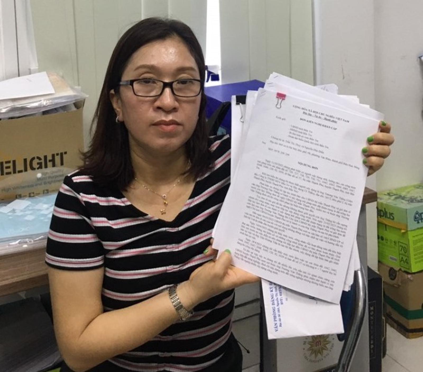 Sau khi phát hiện 10 thửa đất đã được cơ quan chức năng có thẩm quyền cấp GCNQSDĐ nhưng bị ông Thắng chiếm dụng xây công trình trái phép, bà Trần Thị Thùy đã làm đơn tố cáo gửi cơ quan chức năng. Ảnh: Nguyên Dũng