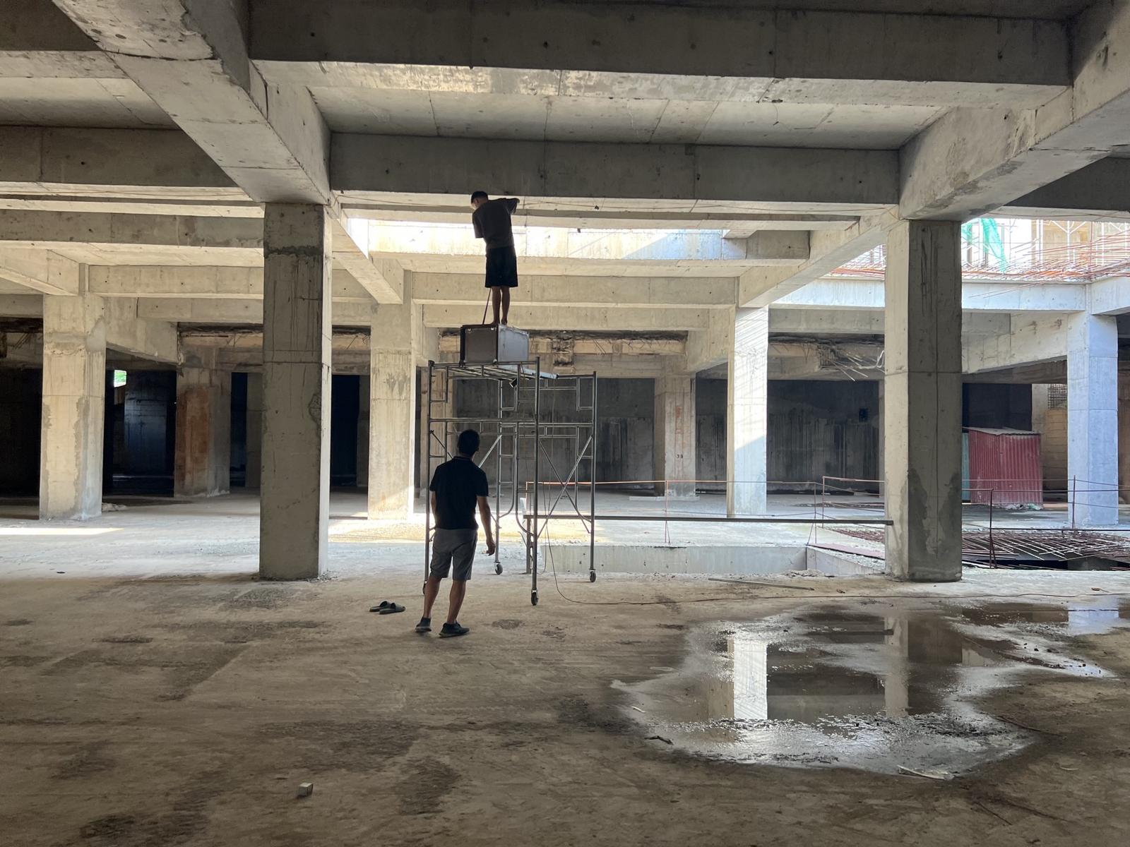 Hoạt động xây dựng nhà xưởng, kho bãi trái phép tại tầng hầm B1 vẫn đang được diễn ra. Ảnh: Sơn Nguyễn.