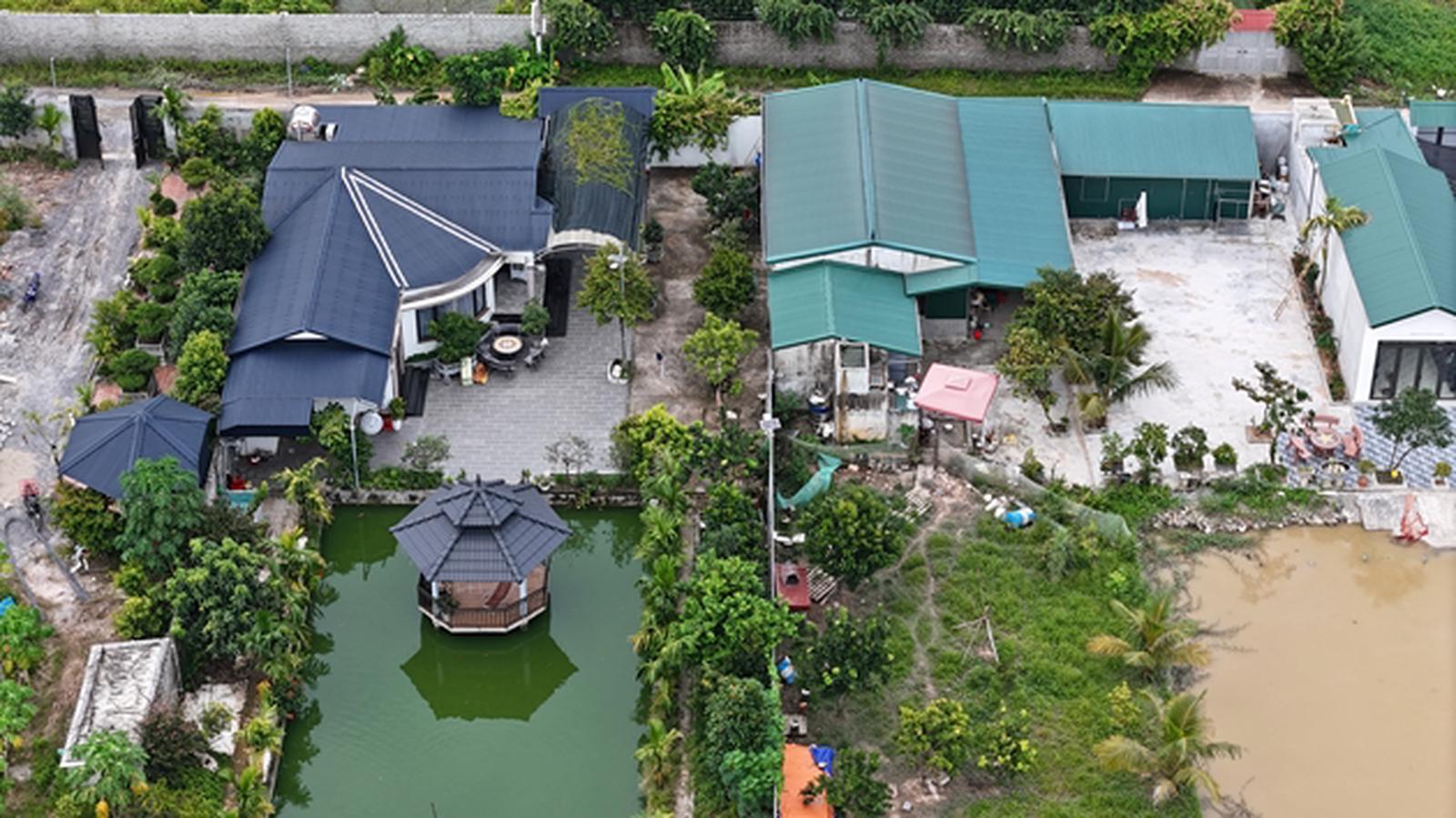Biệt thự, lầu vọng nguyệt… “mọc lên” giữa khu chăn nuôi tại Phú Xuyên. Ảnh: Thanh Hoa