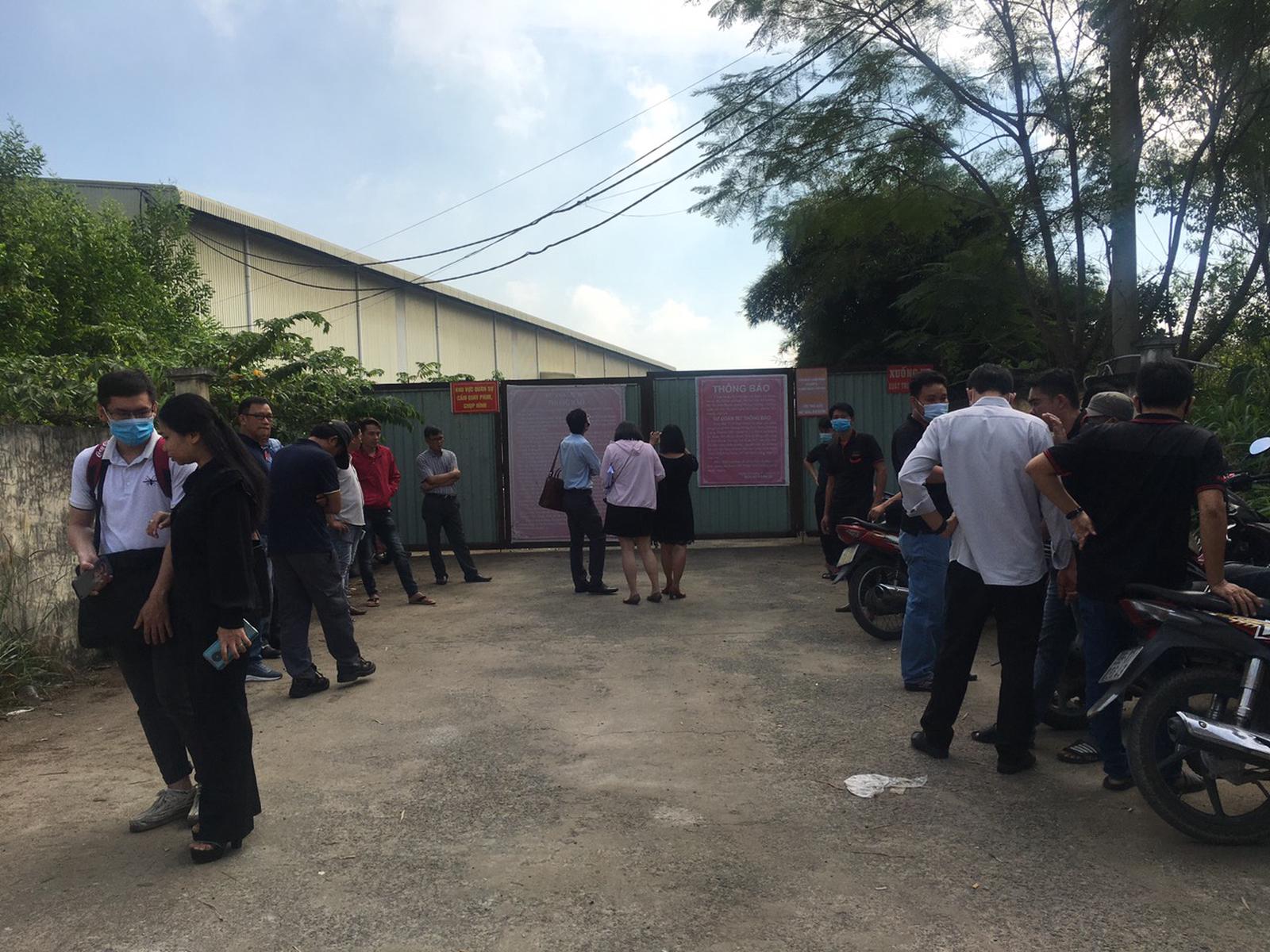 Theo quan sát tại hiện trường của chúng tôi ngày 24/12, nhiều chục công nhân viên của Công ty Ri Ta Võ trực chờ bên cạnh xe máy, ô tô vận chuyển hàng. Sát địa điểm công nhân chờ là cánh cổng sắt khép im ỉm.