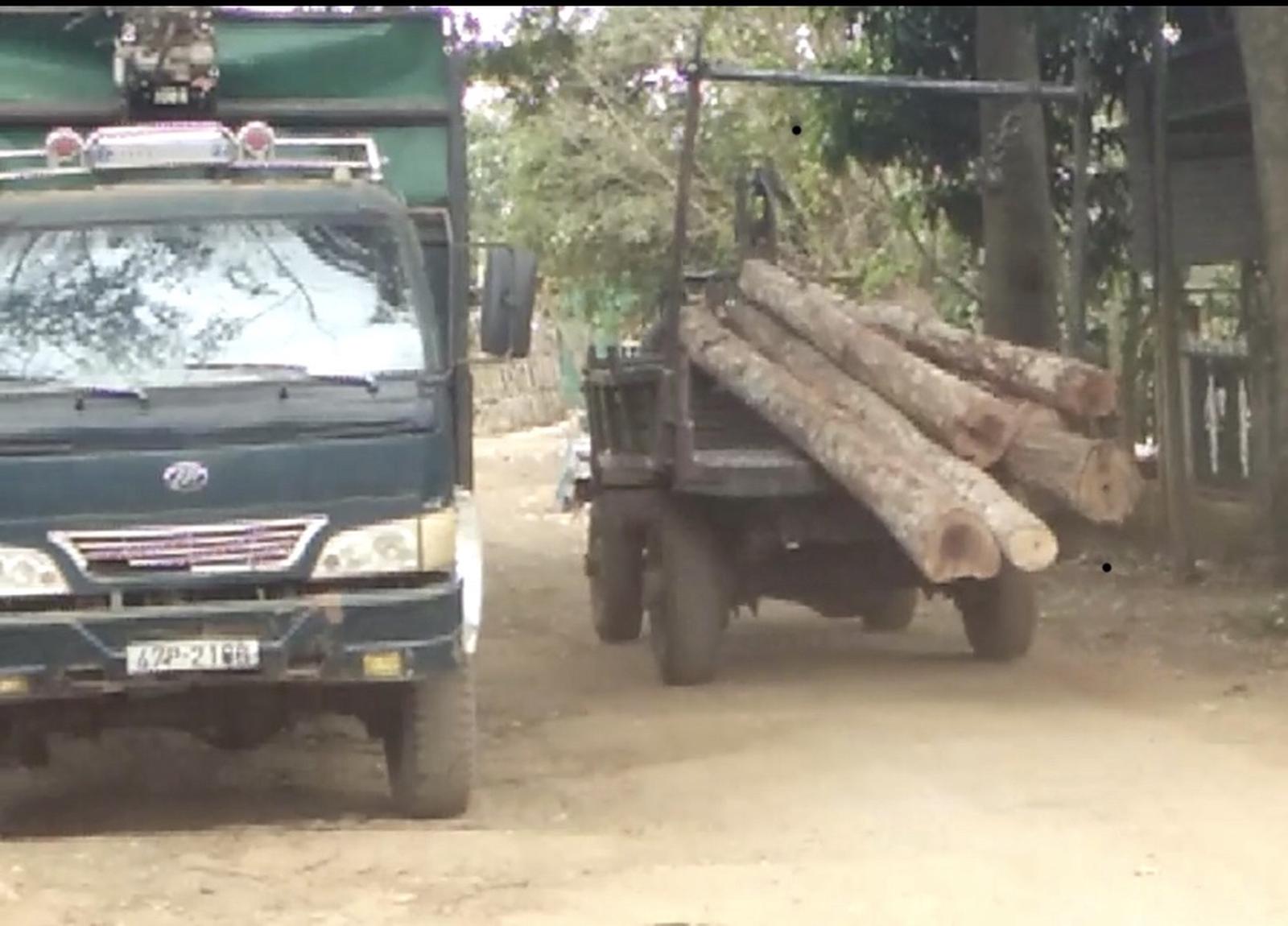 Lâm tặc ngang nhiên chuyển gỗ về xưởng cưa "L.H" địa bàn do Hạt Kiểm lâm CưM'gar phụ trách. Ảnh cắt ra từ clip điều tra của PV Báo Thanh tra