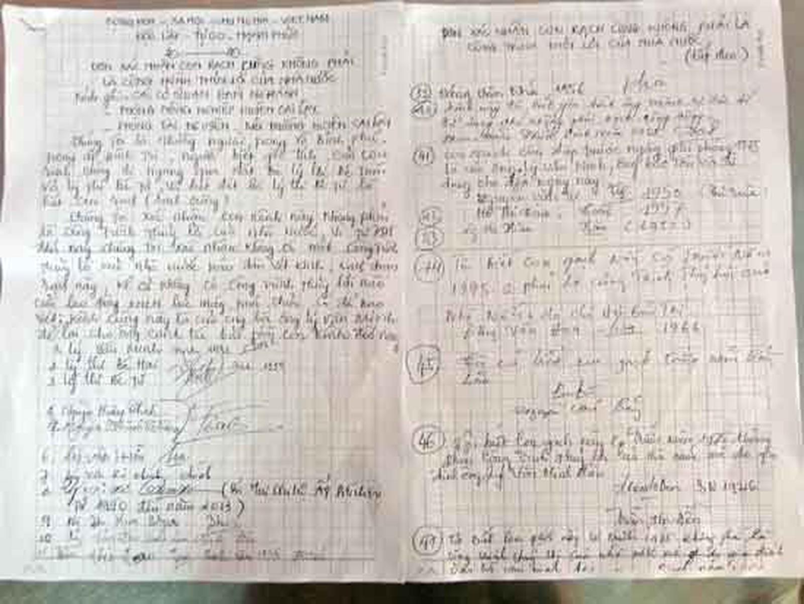 Biết chuyện cô Bé Tám bị chèn ép, hơn 50 gia đình trong vùng đồng loạt ký đơn xác nhận con rạch Cùng không phải là công trình thủy lợi của Nhà nước, từ năm 1975 đến nay không có công trình thủy lợi nào được Nhà nước thực hiện trên con rạch này và con rạch do ông bà của ông Lý Văn Minh (cha cô Bé Tám) tự đào từ xưa.