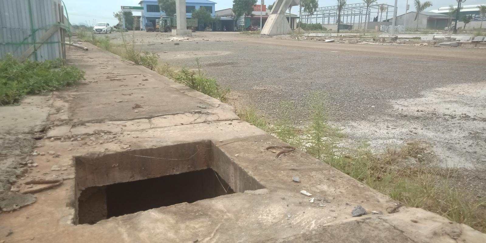Cống ở hạ tầng Khu dân cư số 1 huyện Yên Định không có nắp. Ảnh: VT