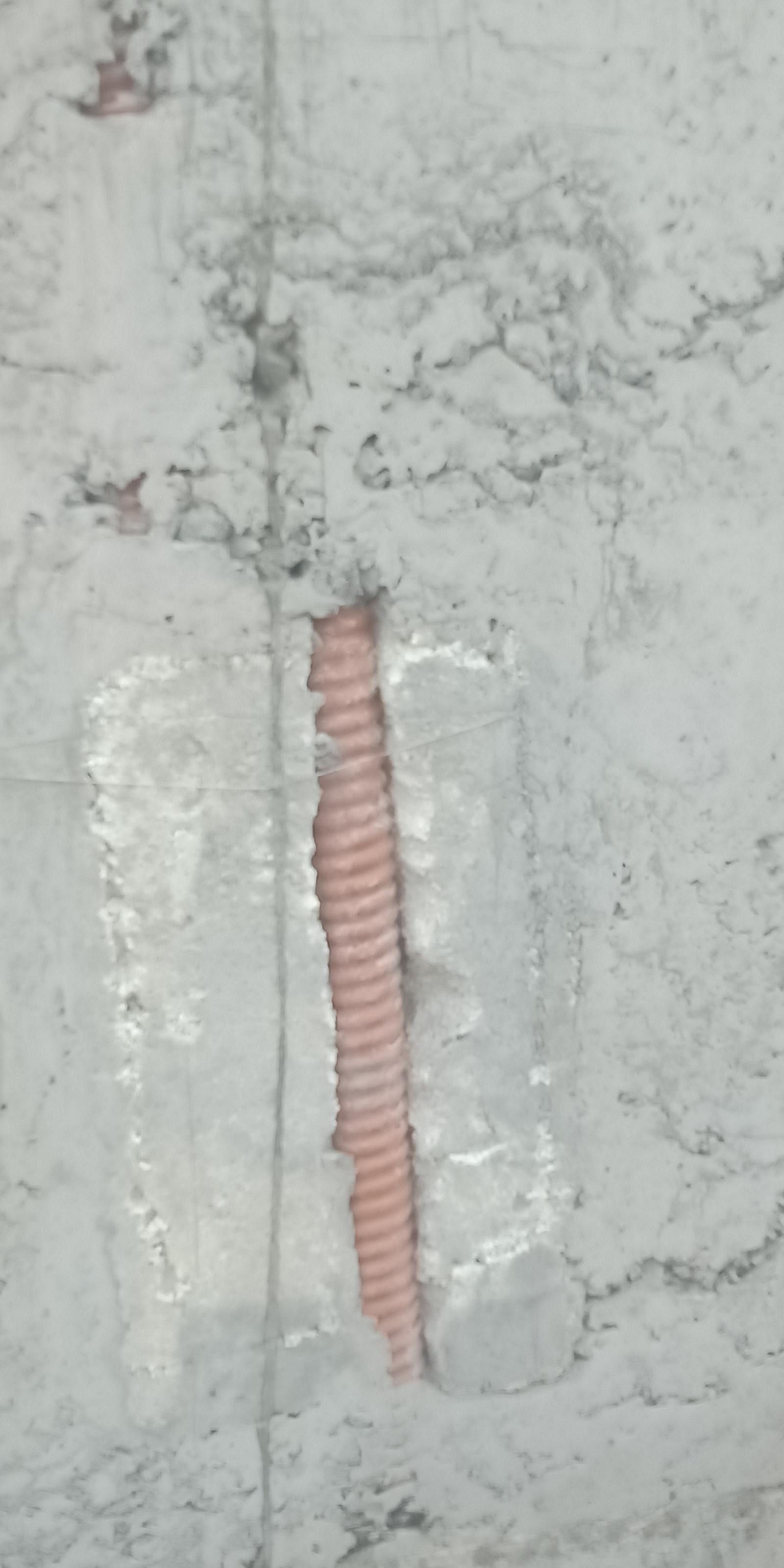 Có dấu hiệu mặt bê tông bị rỗ và đường dây lòi ra ngoài. Ảnh: VT