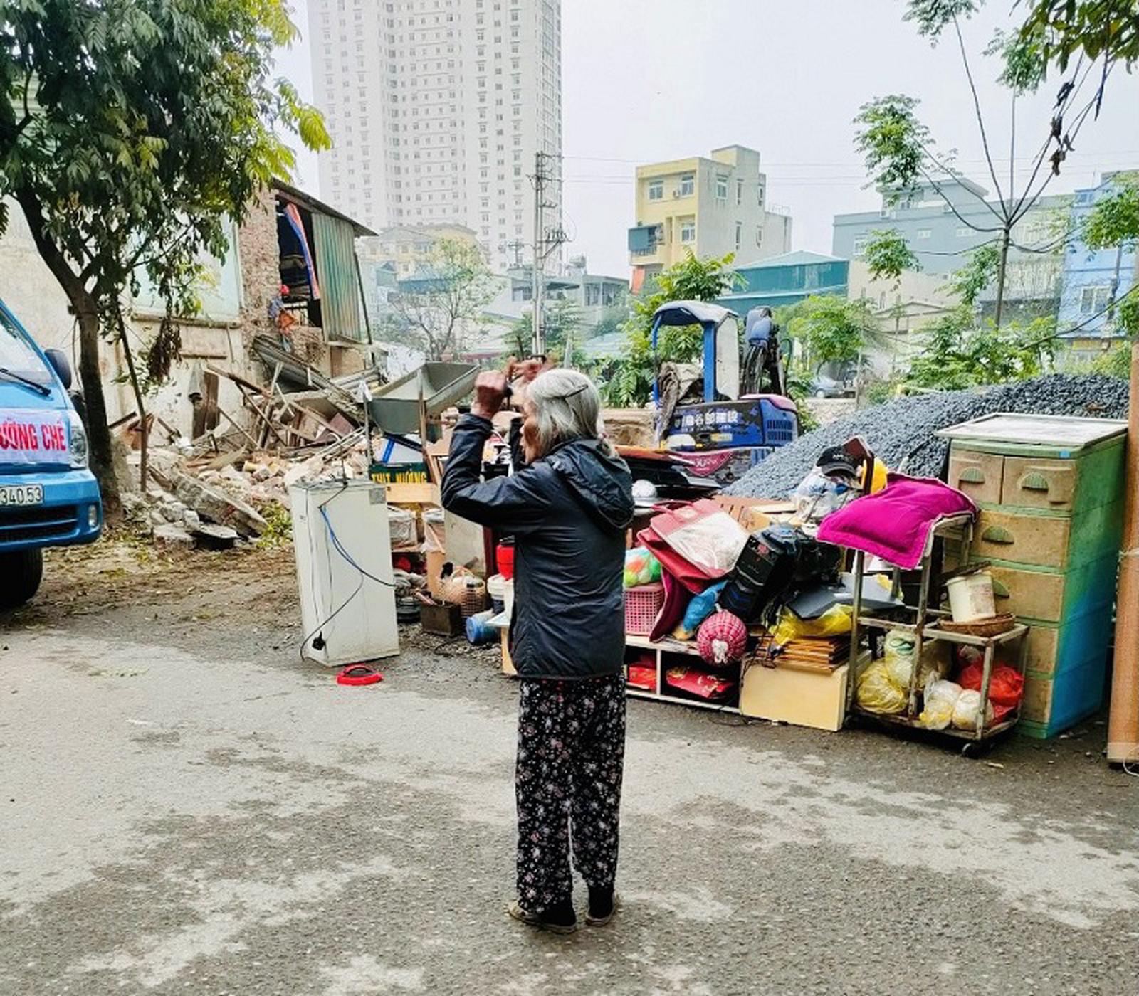 Bà Nguyễn Thị Hồng Sam cũng phải “ra đường” với đống tài sản. Ảnh: QM