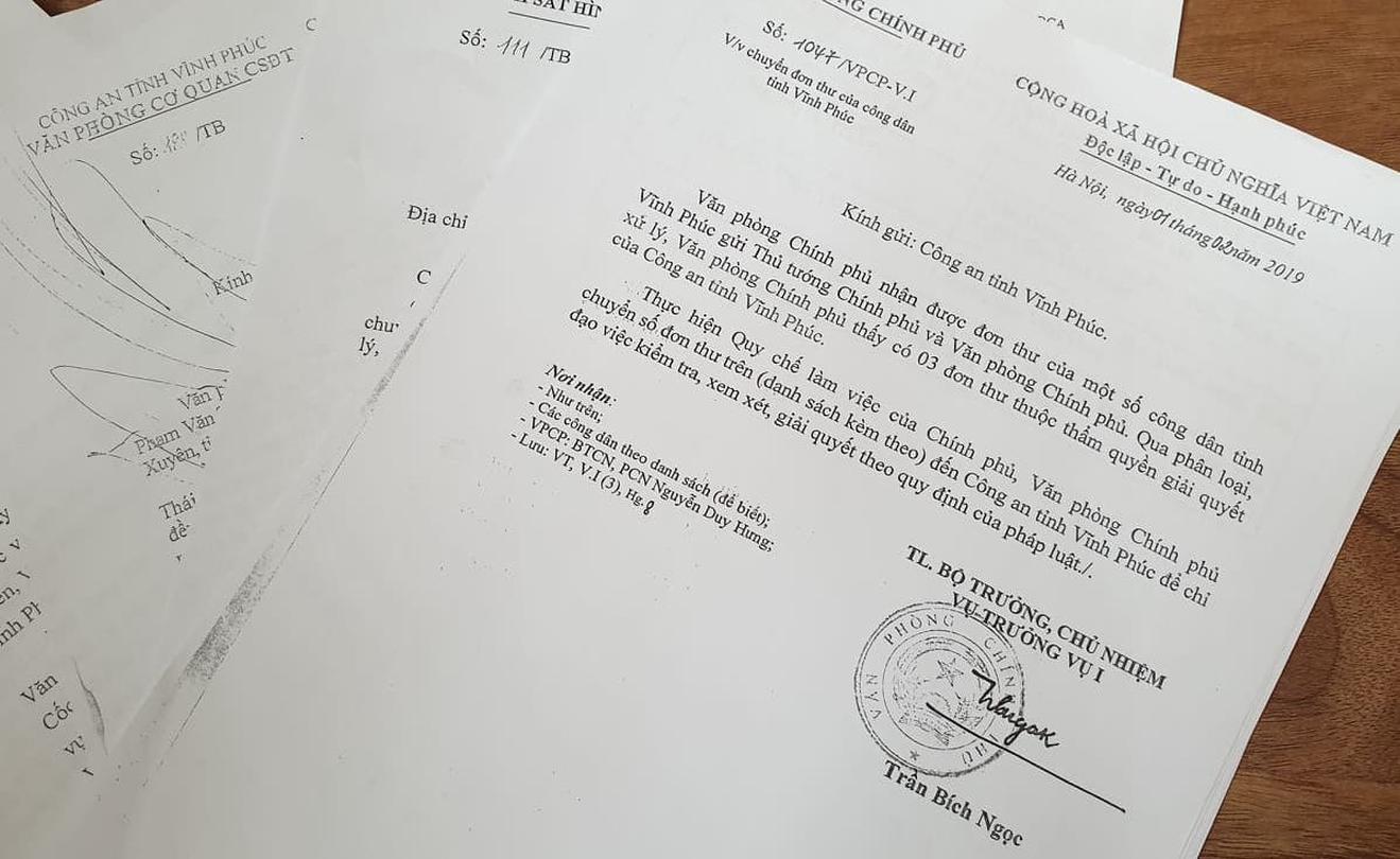 Ngày 18/1/2019, Cơ quan Cảnh sát điều tra Công an huyện Bình Xuyên có Văn bản số 180/TB-CSĐT thông báo kết quả điều tra xác minh tới bà Lực và anh Thái.