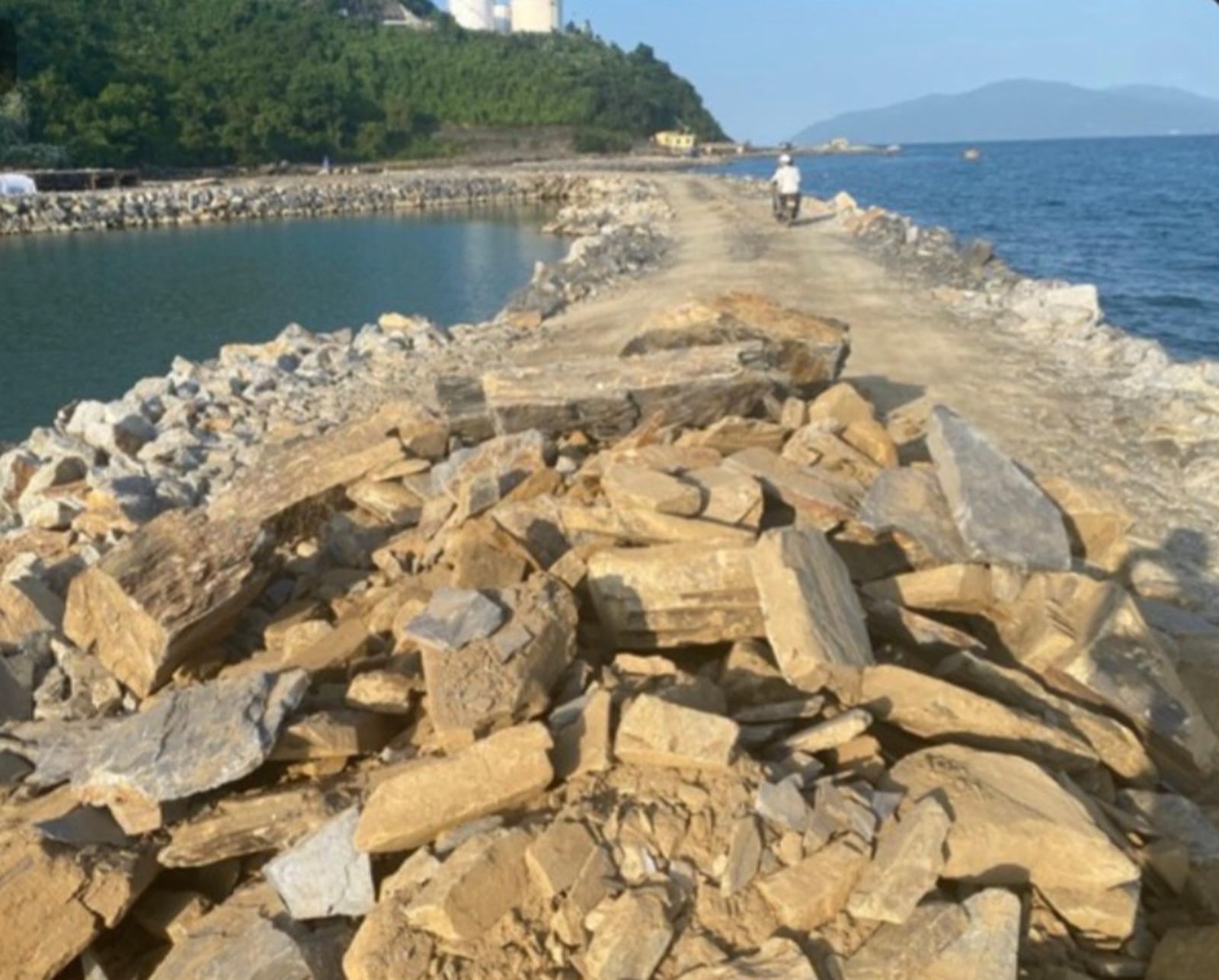 Đá hộc xây dựng kè chắn sóng không đảm bảo chất lượng. Ảnh: P.T