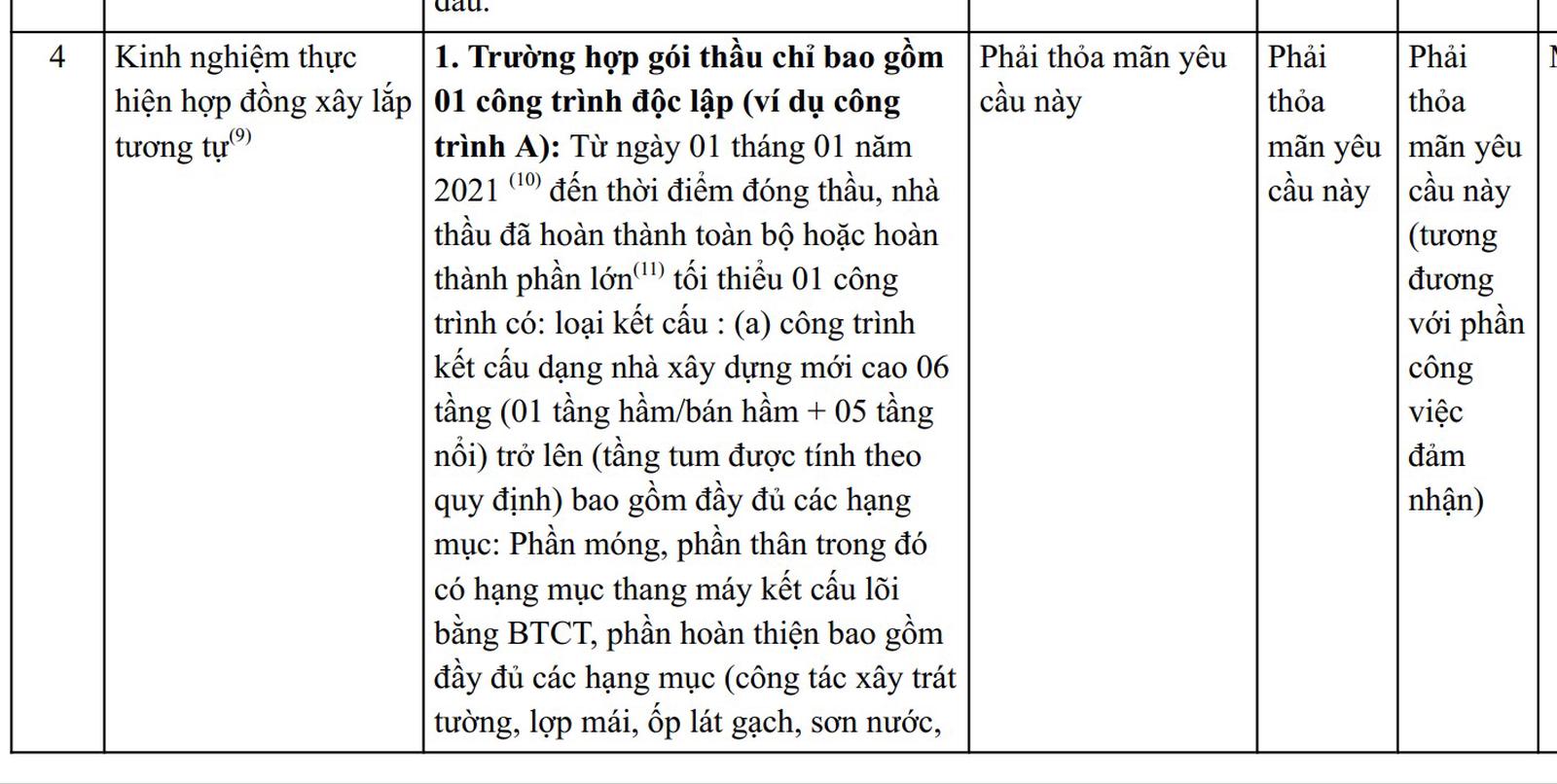Tiêu chí đưa ra tại Hồ sơ mời thầu với Hợp đồng xây lắp tương tự. Ảnh: Minh Tân