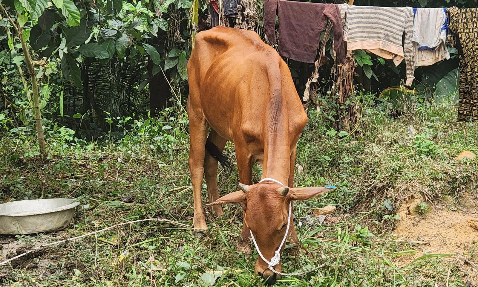 Một con bò được cấp về cho hộ nghèo tại thôn Cu Dông, dù theo hồ sơ quy định trung bình mỗi con bò có trọng lượng 159,4kg. Ảnh: Minh Tân