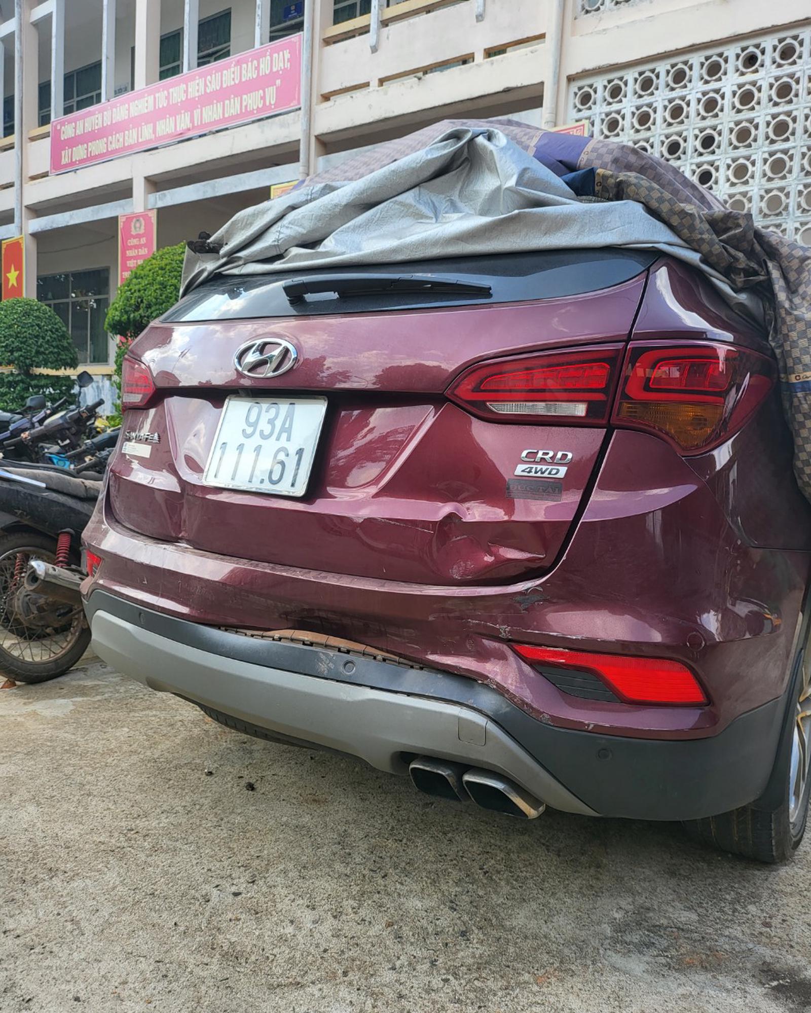 Ngày 12/2/2023, vợ chồng bà lái chiếc xe ô tô hiệu Hyundai Santafe mang BKS 93A-111.61 đến thửa đất trên thì phát hiện ông Trương Văn M., Trương Văn Ch. đang cho nhiều xe ben và máy xúc xúc đất đi bán. Khi được yêu cầu dừng lại để báo công an thì bất ngờ ông Trương Văn M. lên chiếc xe ô tô bán tải mang BKS 93C-153.06 lùi mạnh và đâm thẳng vào đuôi xe của bà, gây hư hỏng toàn bộ phần đuôi xe.